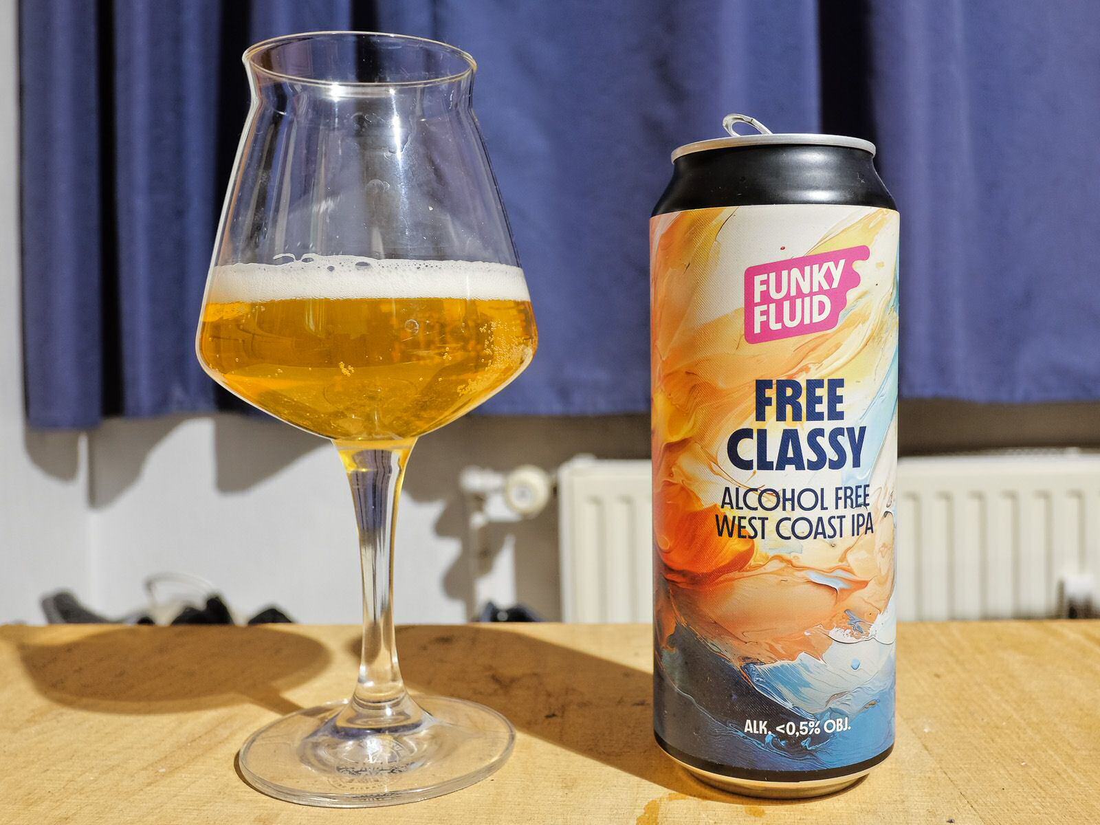 The non-alcoholic version of our Classy West Coast IPA. Even without the alcohol, it keeps the original`s dryness, bitterness, and bold citrusy resinous. (Zitat Browar Funky Fluid)
