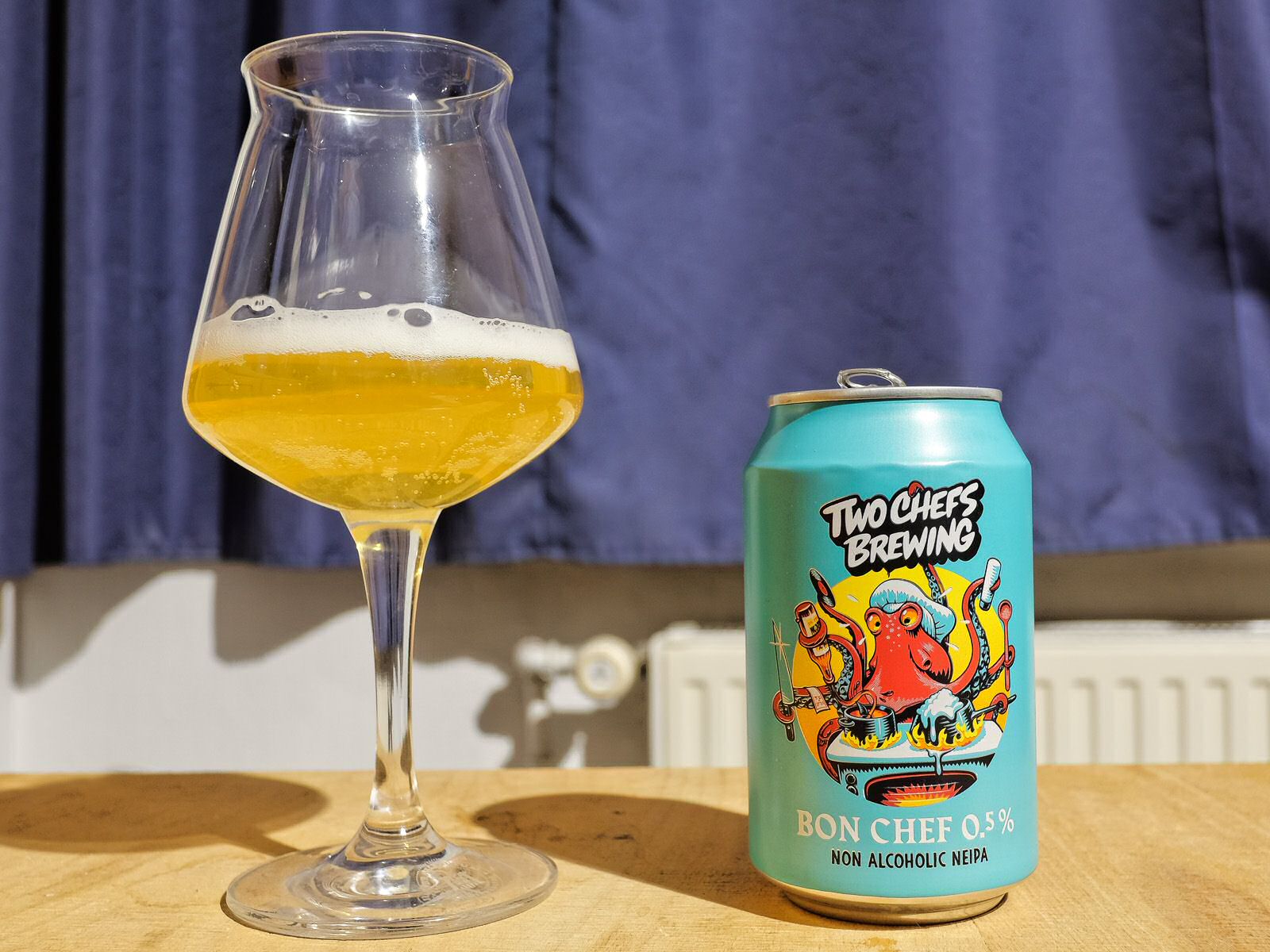 The culinary world is all about freshness, so of course we made sure that the passion fruit aromas, grassy vibes and that smooth, hazy body of everyman's friend Bon Chef also pops out at you in this non-alcoholic variant. The only difference? You stay as sharp as a chef with eight arms and endless flair. Très bon, chef! (Zitat Two Chefs Brewing)