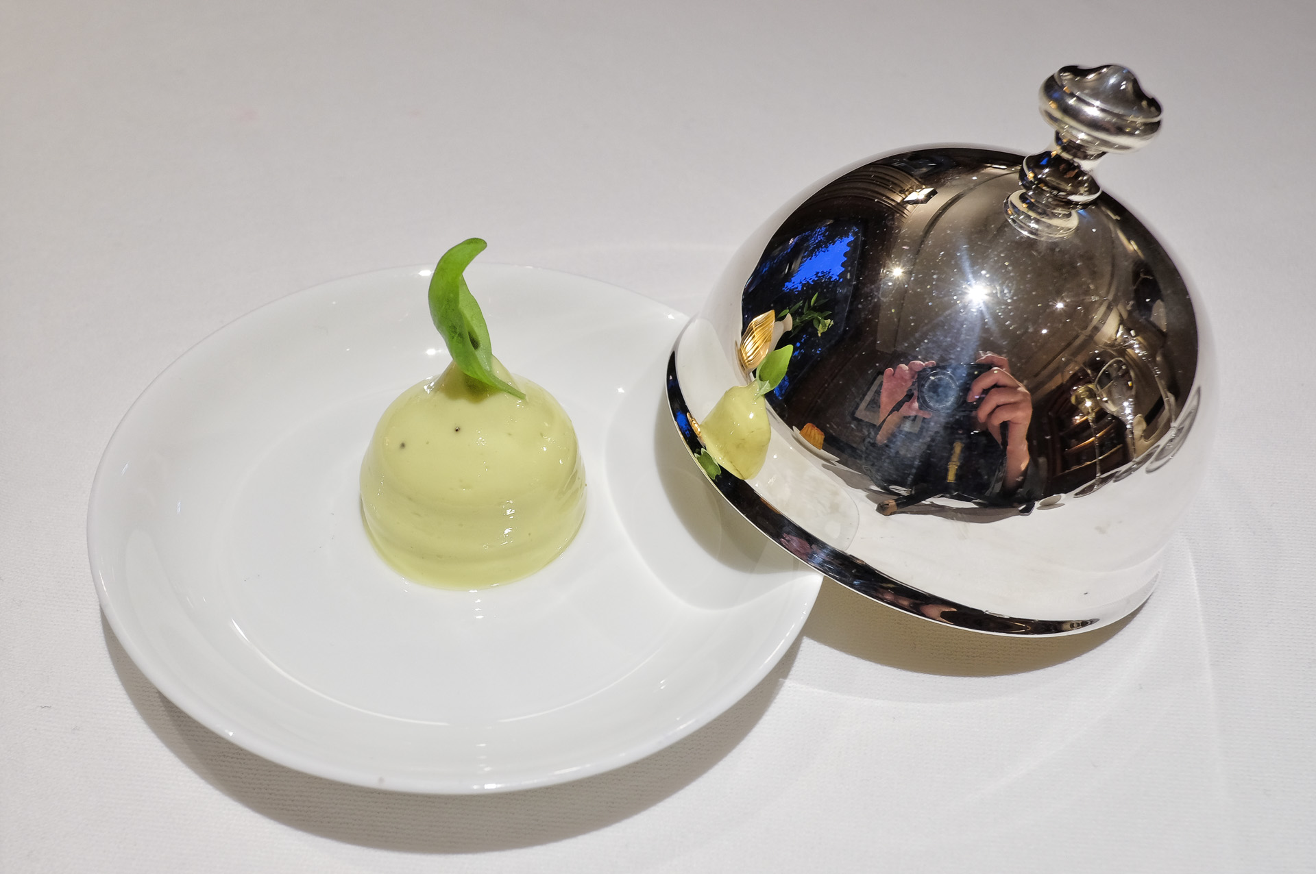 Als Amuse Gueule gab es eine Gurken Kaltschale mit Zitronenmelisse und Olivenöl Kaviar. Frisch mit feinem Aroma, sehr lecker.