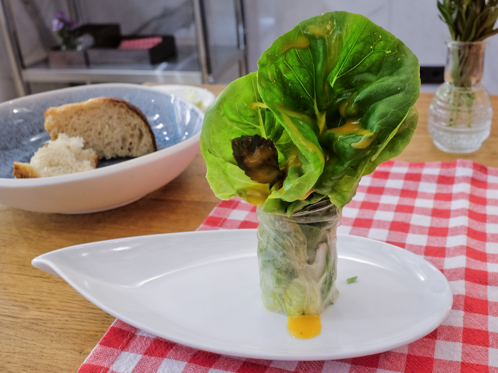 Die "Sommerrolle" war mit Römersalat und einer Grapefruit Vinaigrette gefüllt. Der Salat hatte eine feine Bitternote. Sehr lecker.