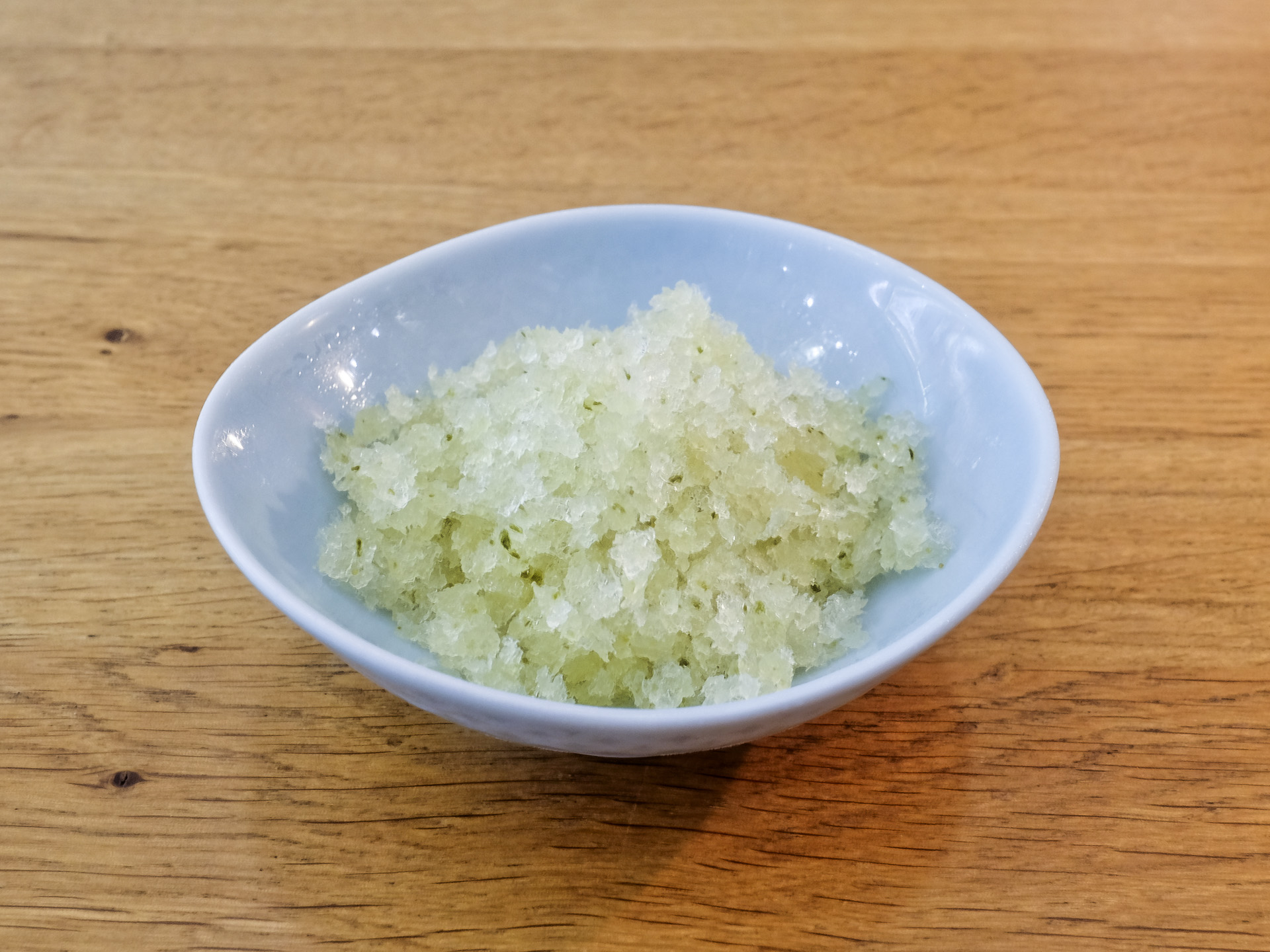 Zur Erfrischung gab es ein Gurken Granita mit einer (zu) kräftigen Säure. Gerade noch sehr lecker.