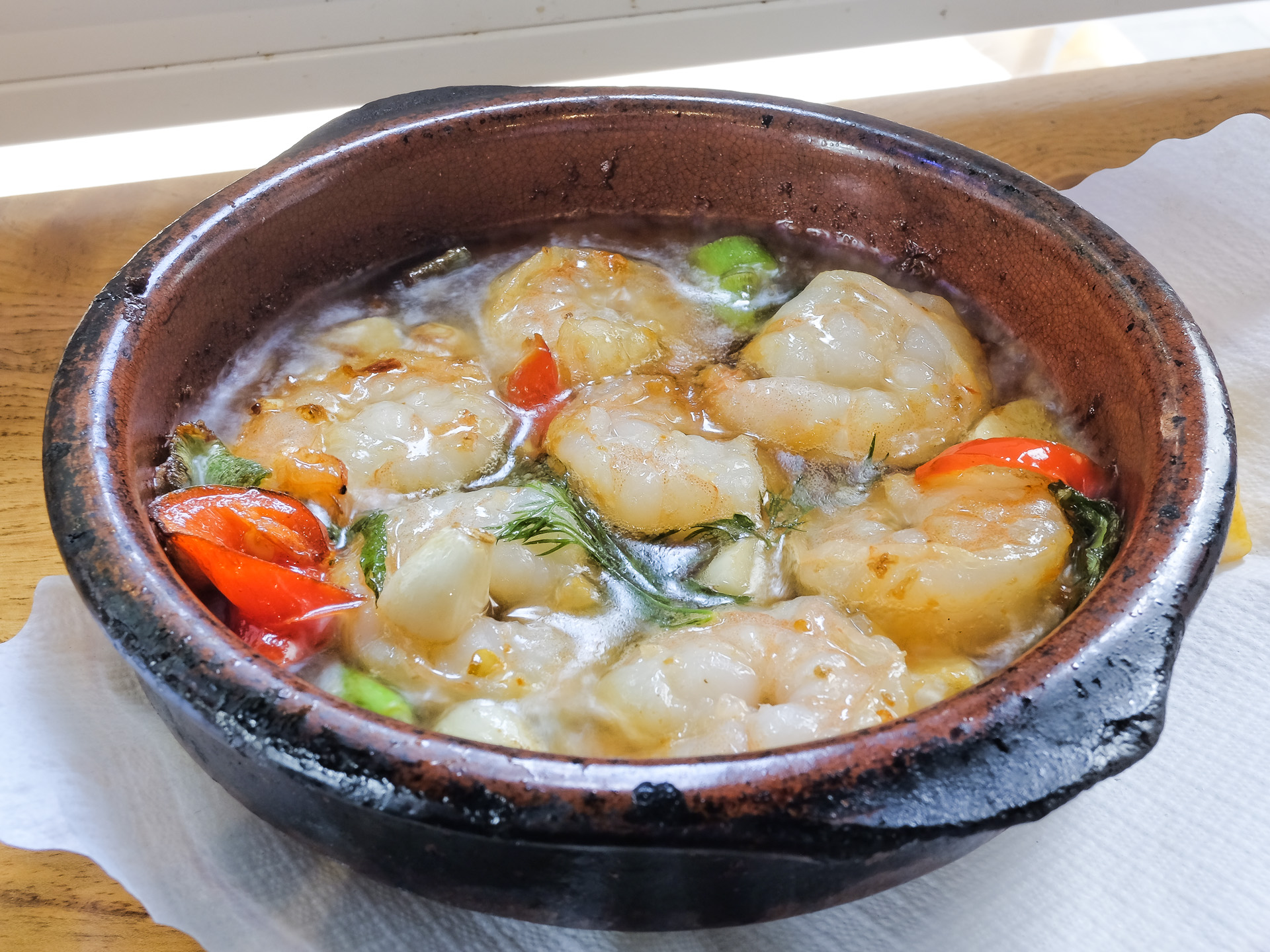 Gambas al ajillo sind ein Tapas Klassiker. Die Gambas waren sehr zart und hatten eine schön knackige Textur und ein feines Aroma. Gegart wurden sie in Olivenöl mit Chilis, Petersilie und reichlich Knoblauch. Sehr lecker, Klasse.