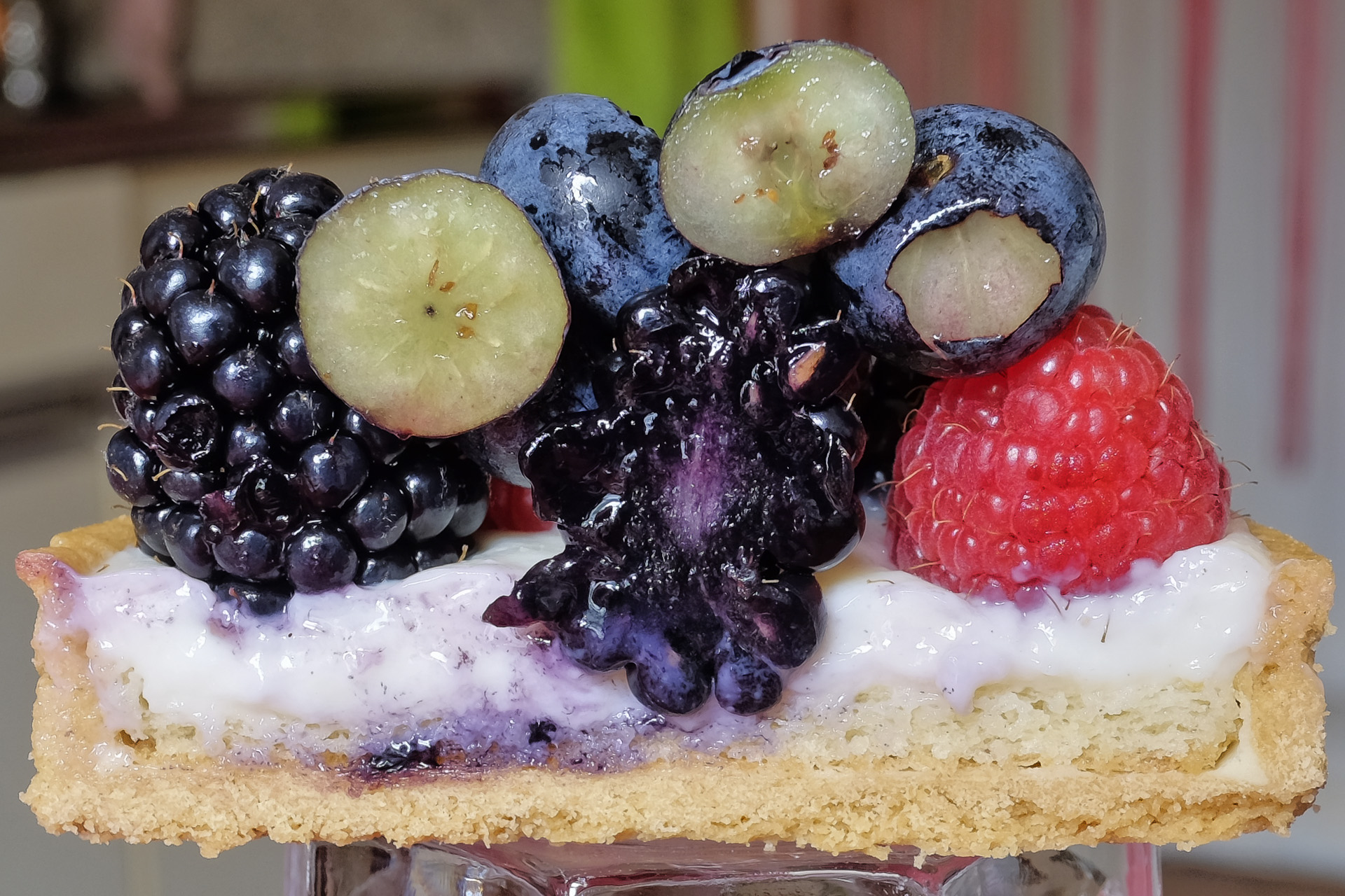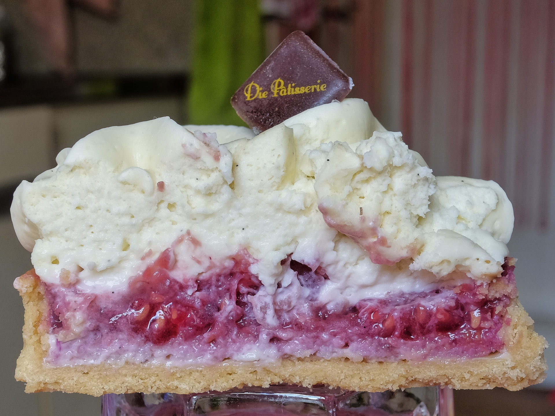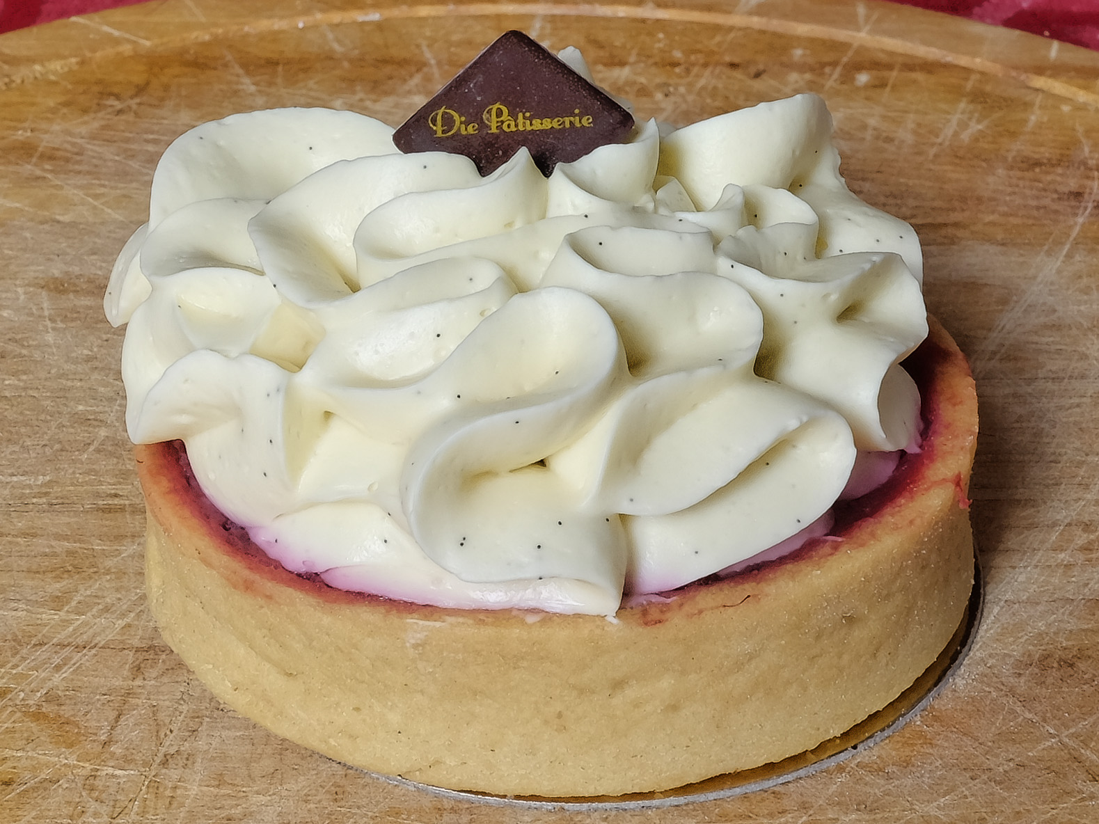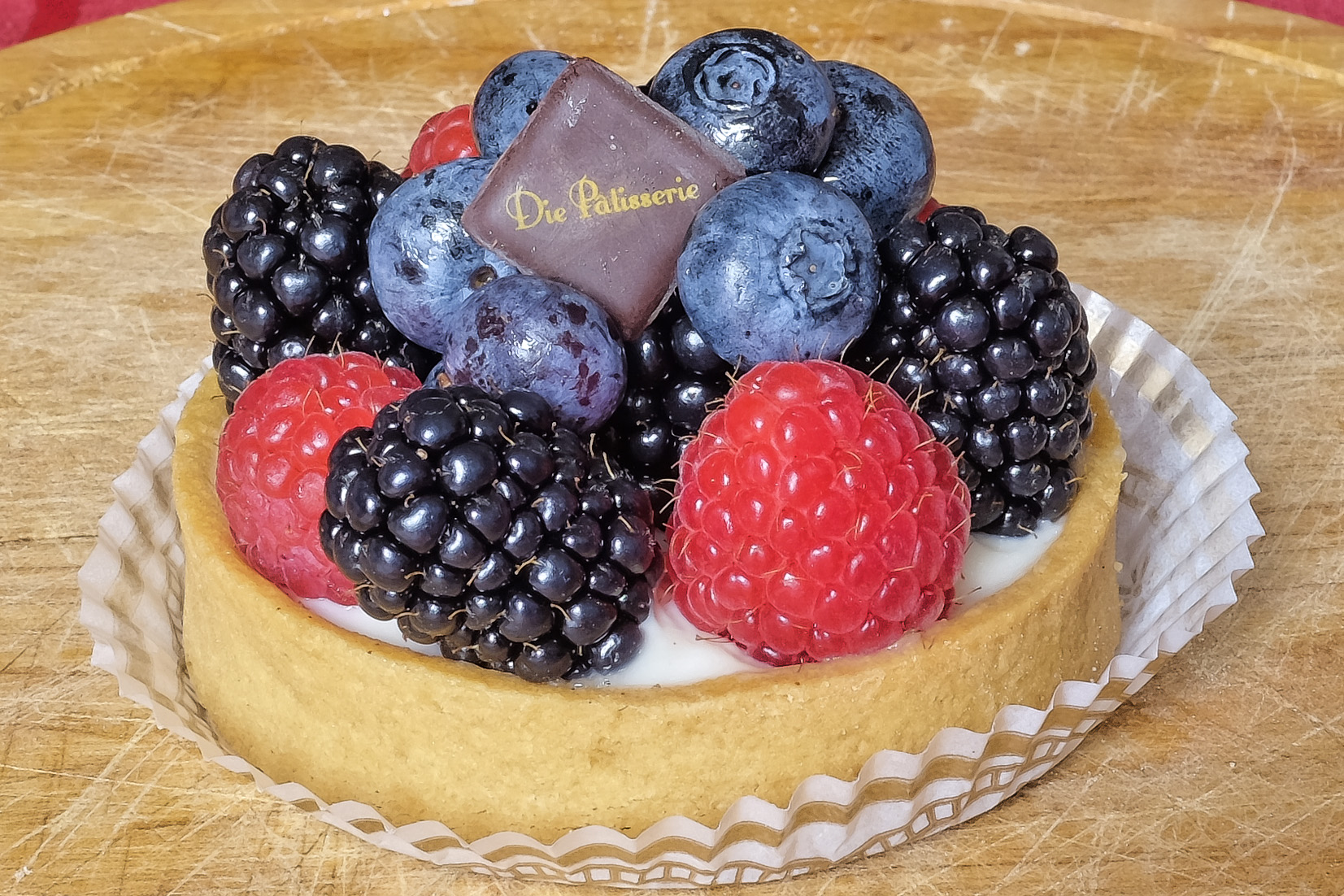 Hausgemachter Mandelmürbeteig, Crème Pâtissière und on top frische Beerenfrüchte … traumhaft fruitées. (Zitat Die Patisserie)