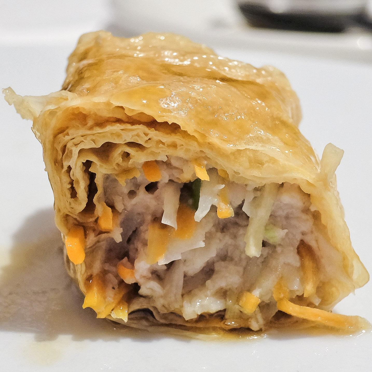 505 - „Bambusrollen“ Tofuhaut mit Ibericofleisch in Austernsauce