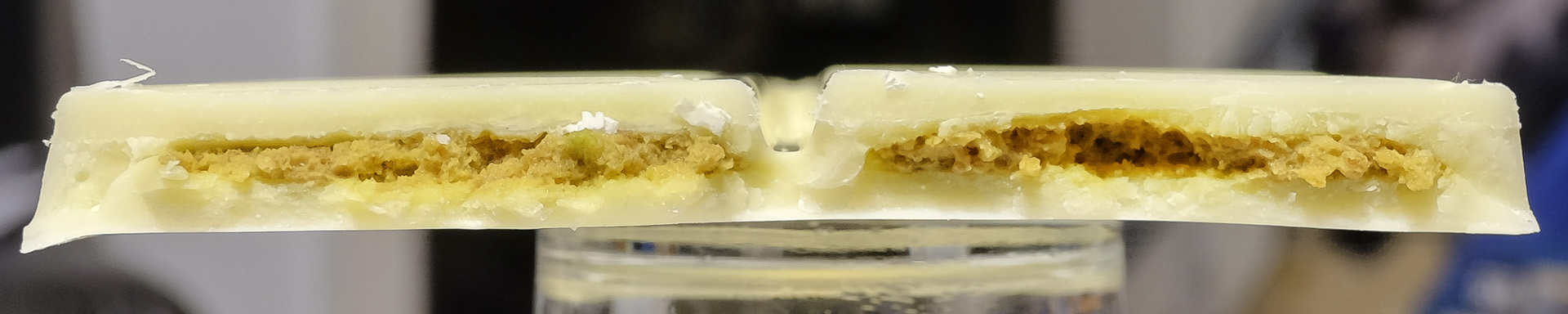 Die weiße Schokolade hatte einen zarten Schmelz und ein feines Aroma. Gefüllt war sie nicht wie bei Dubai Schokolade mit Kadayffäden sondern mit Zuckerwatte und einer Pistaziencreme. Die Zuckerwatte hatte eine interessante, nicht klebrige Textur, die Pistaziencreme hatte ein feines Aroma. Sehr lecker, Klasse. Gekauft bei Rewe.