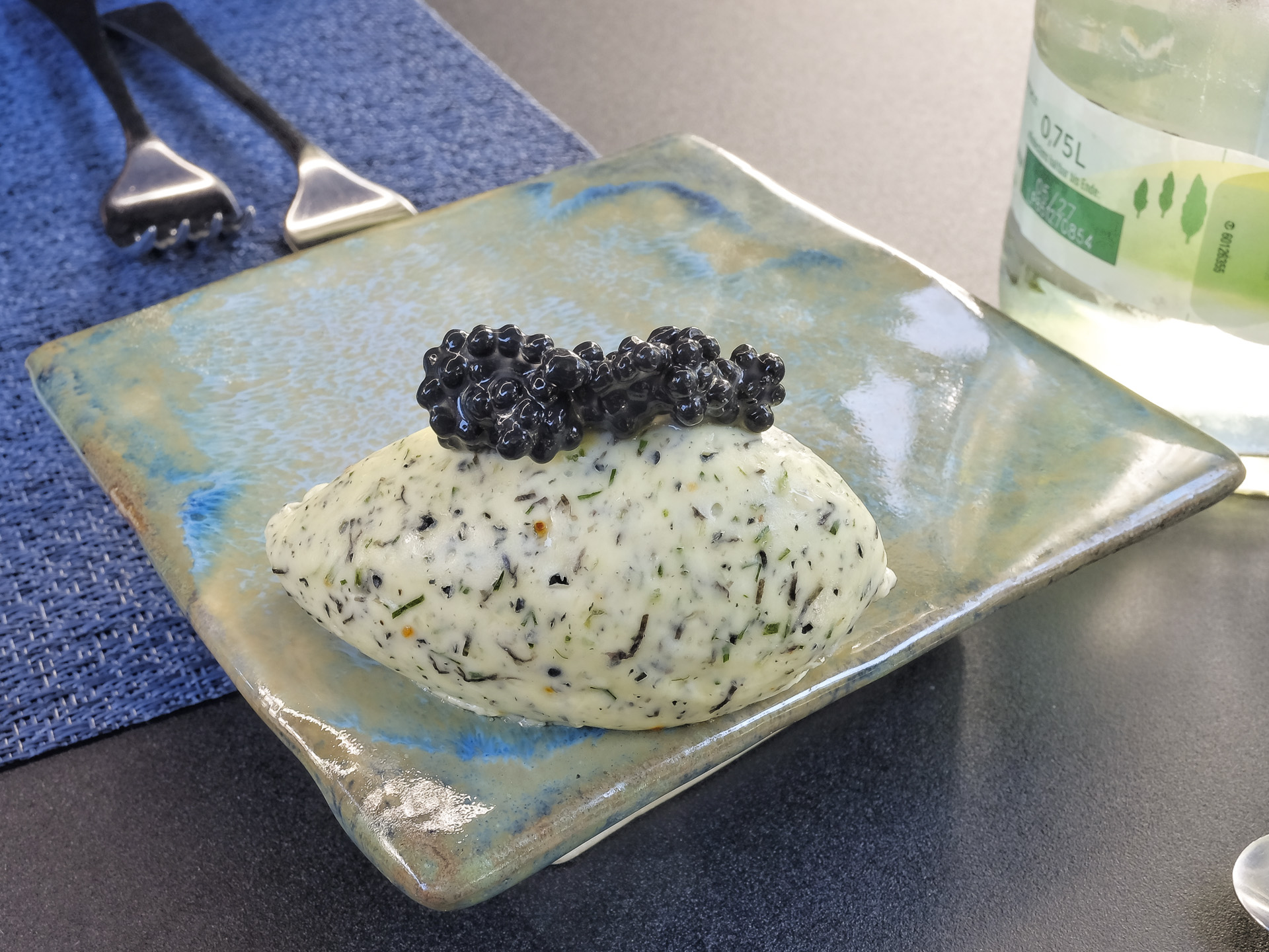 Dazu gab es eine gesalzene Algen Butter mit Schnittlauch und etwas Algen Kaviar von AKI Kaviar (Caviart). Sehr lecker.