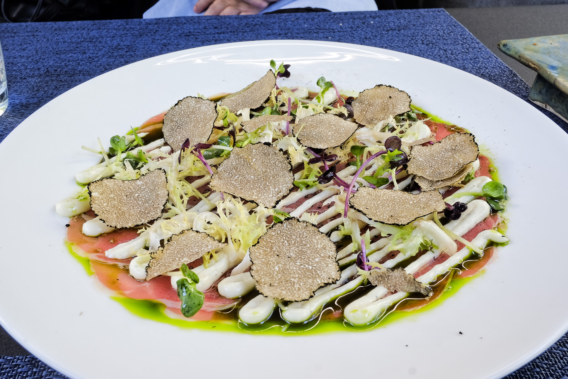 Carpaccio vom Husumer Weiderind, Sommertrüffel, Parmesan, Gartenkräuter