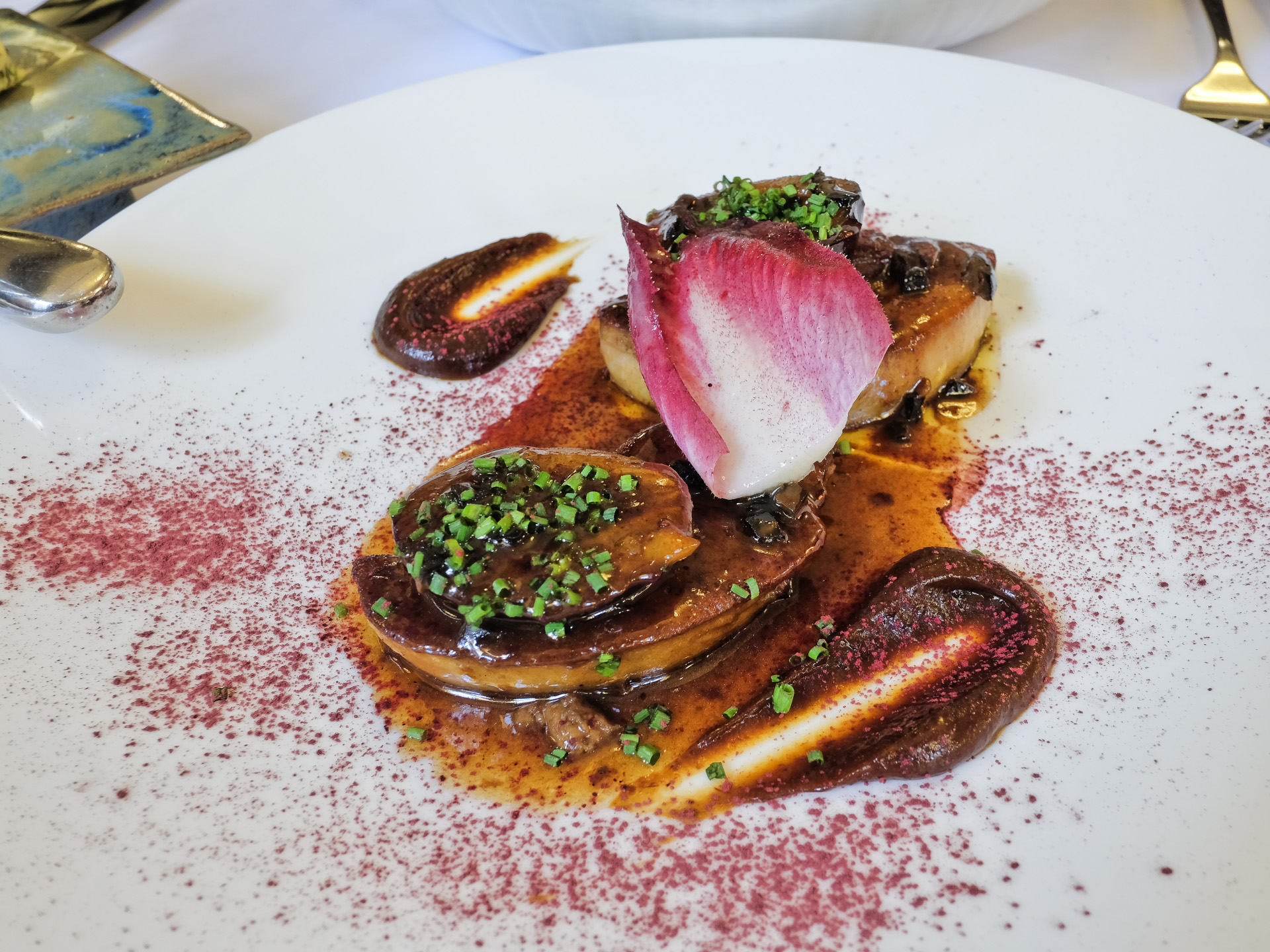 Das Bœuf Bourguignon ist ein Klassiker der französischen Küche. Das in Rotwein und Portwein geschmorte Rindfleisch hätte etwas zarter sein können. Der Jus enthielt Perlzwiebeln und geräucherten Speck und hatte ein (zu) intensives, rauchig säuerliches Aroma. Der Fleischgeschmack ging dabei etwas unter. Dazu gab es Karotten, grüne Bohnen und ein Kartoffelpüree. Gerade noch sehr lecker.