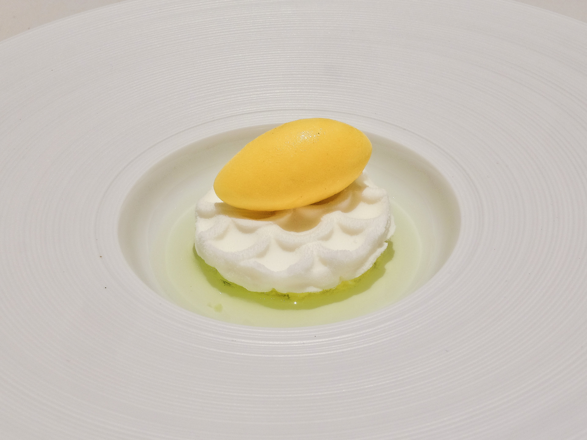 Die Seezunge a la Meunièrewar zart mit schön fester Textur und feinem Aroma. Dazu gab es gebratene Artischocke, ein Artischocken Püree, ein Petersilien Parmesan Tortellini mit feiner Zitrusnote, etwas Zitrus Chutney und einen Artischocken Zitrus Sud mit Olivenöl und feinem eleganten Aroma. Sehr lecker.