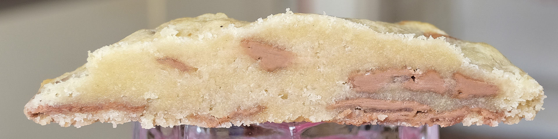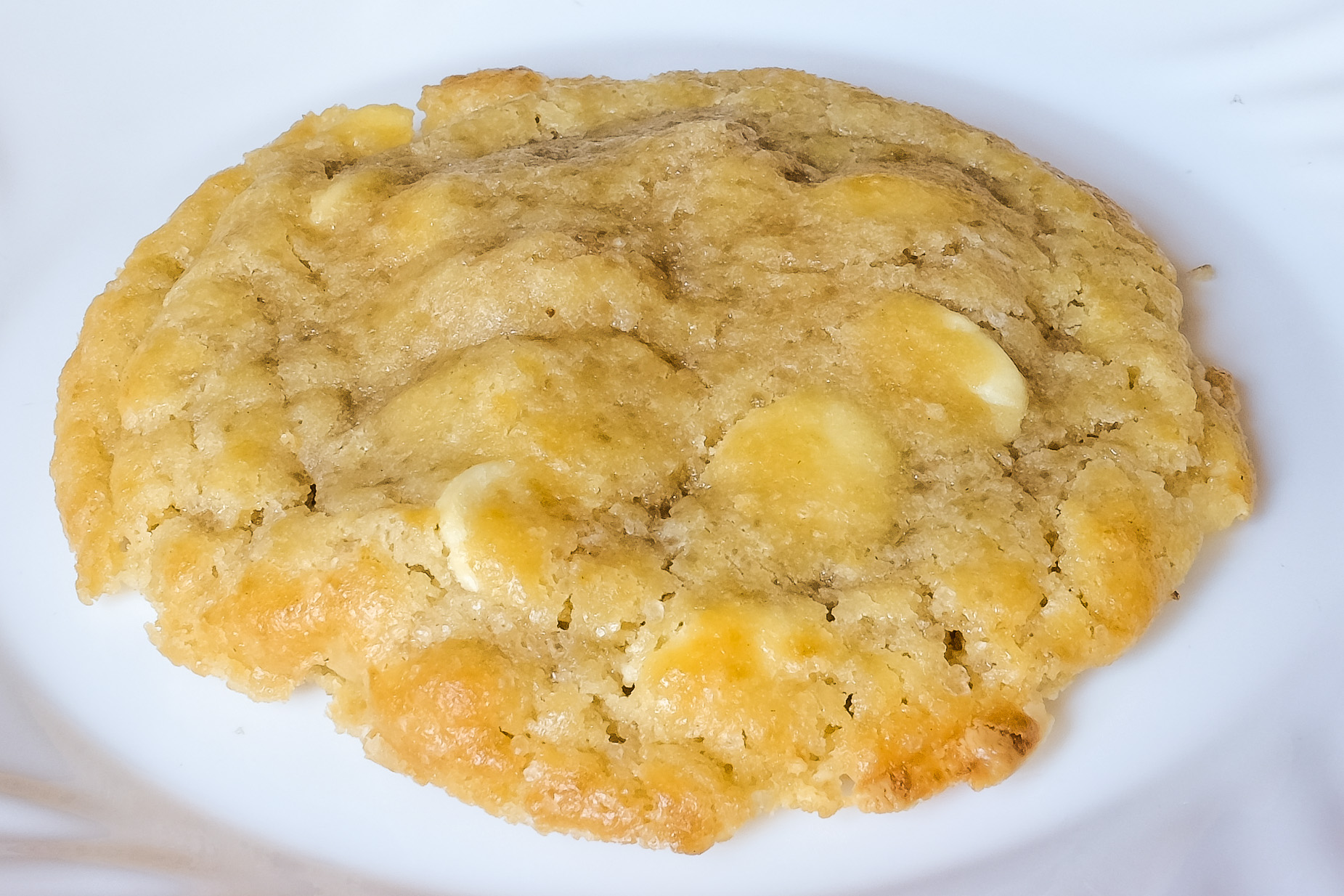 Der Cookie war weich und saftig aber nicht pappig, die Textur erinnerte etwas an rohen Teig. Er war süß und enthielt noch noch helle Schokolade und Zuckerkristalle. Gerade die Zuckerkristalle werden kontrovers diskutiert, ich mag sie. Sehr lecker.