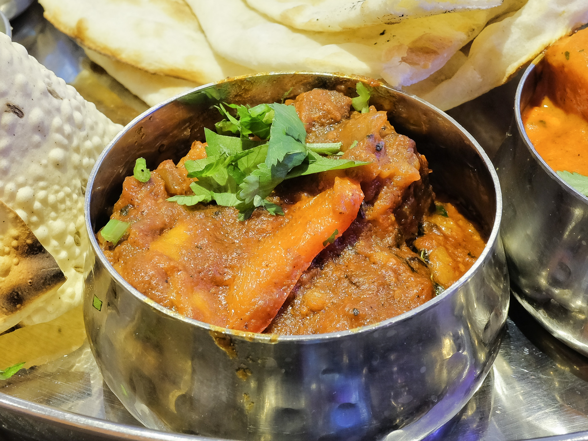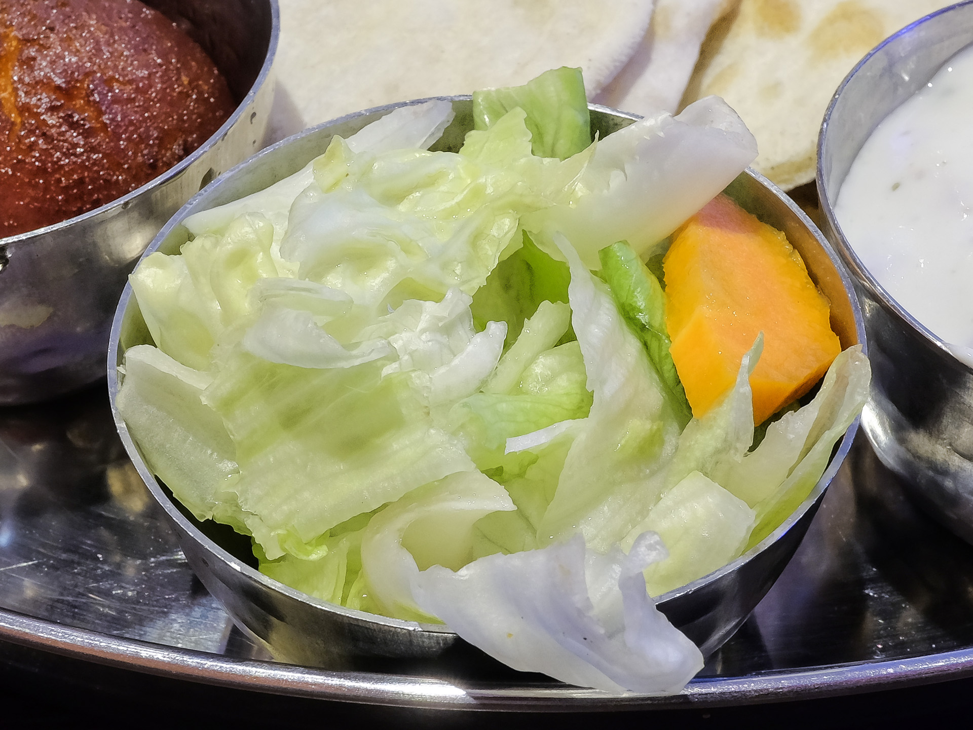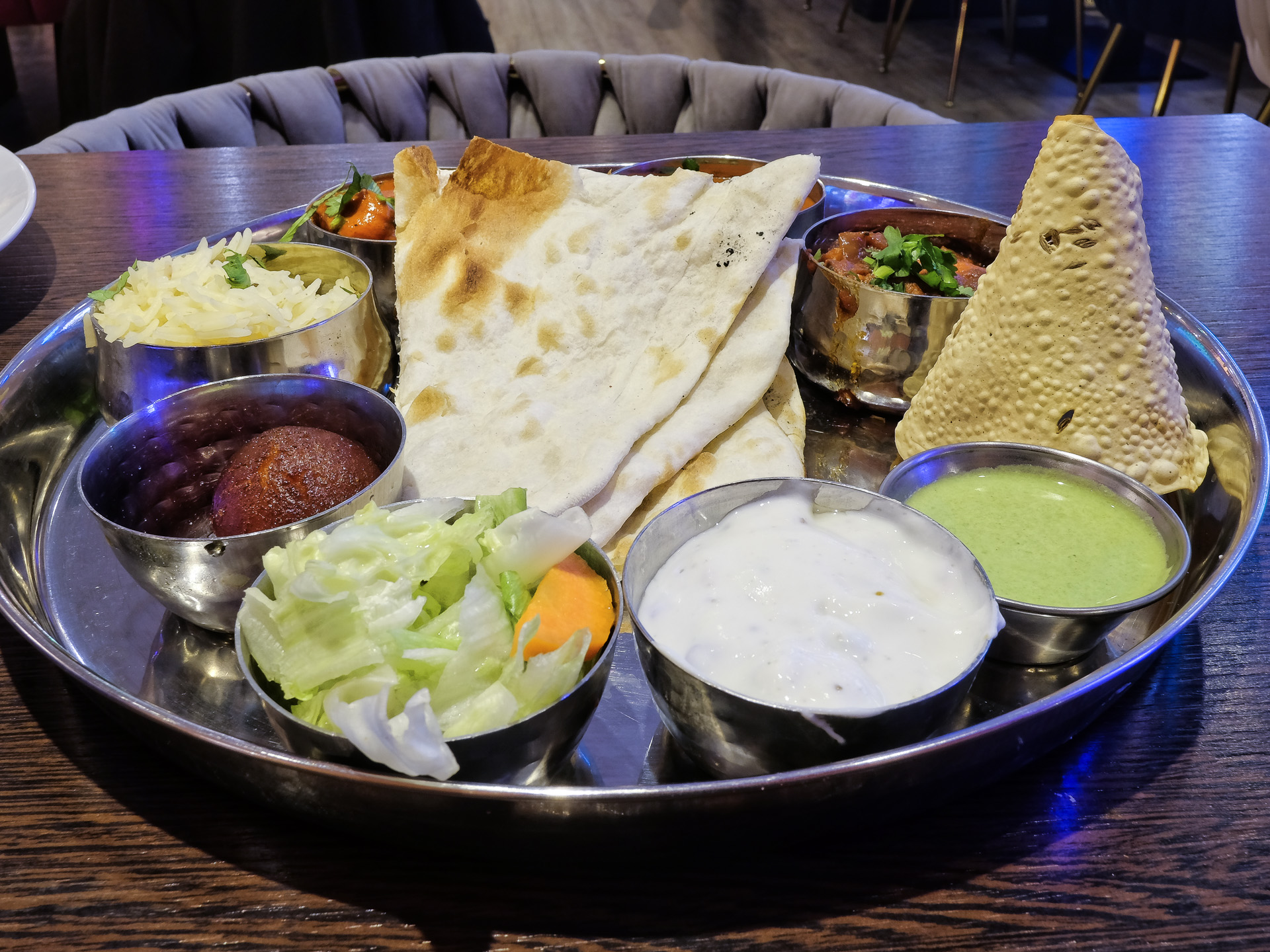 Das Essen wurde auf einem Thali serviert.
