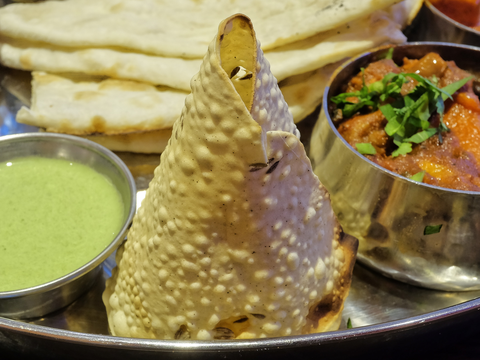 Das Papadam war sehr zart und crisp und hatte ein feines Aroma. Sehr lecker, Klasse.