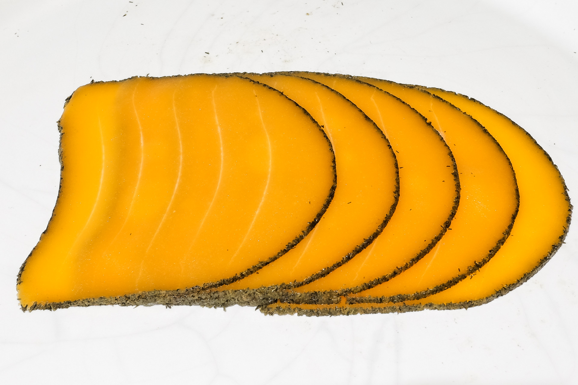 Der Geruch ist dezent fischig, die Textur ist weich elastisch mit angenehmem Biss. Der Geschmack erinnert nur entfernt an Graved Lachs, ganz lecker.