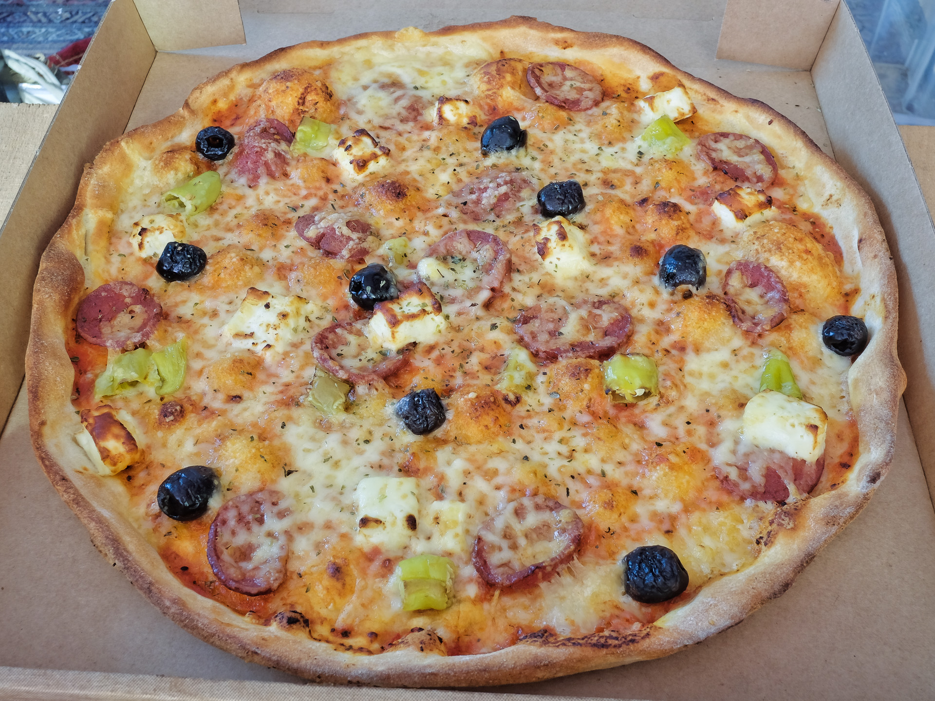 mit Sucuk, Oliven, milder Peperoni und Hirtenkäse