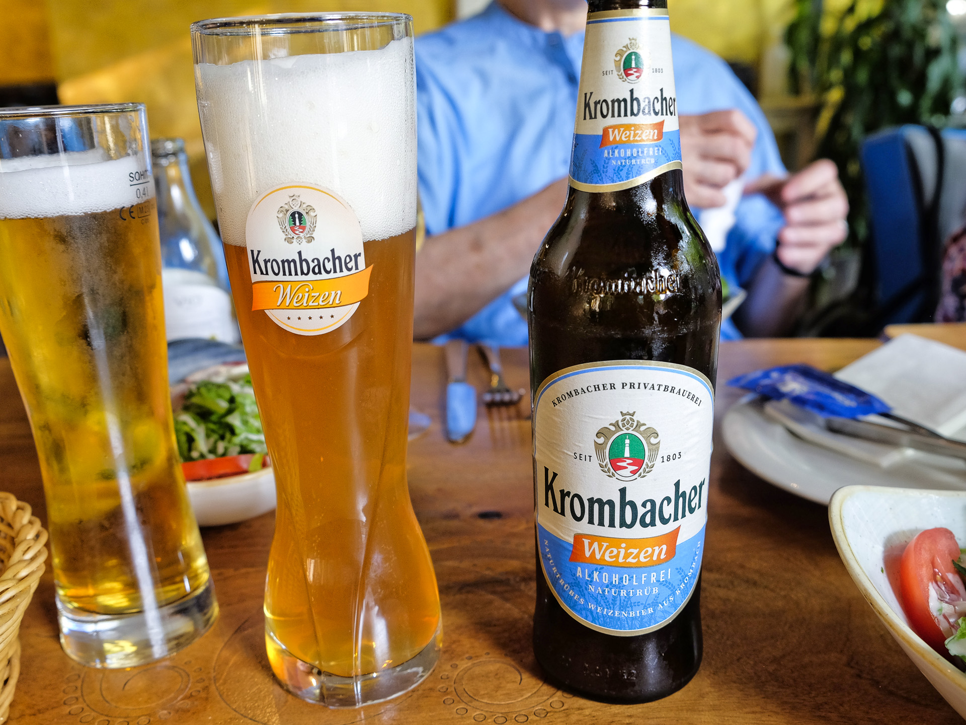 Zum Essen hatte ich eine Flasche Krombacher Hefeweizen Alkoholfrei (0,5 l für 5,90 €).