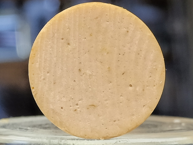 Vegane Pommersche Schnittlauch Vegane Leberwurst Alternative mit Schnittlauch (3%) und Erbsenprotein (7%), gegart