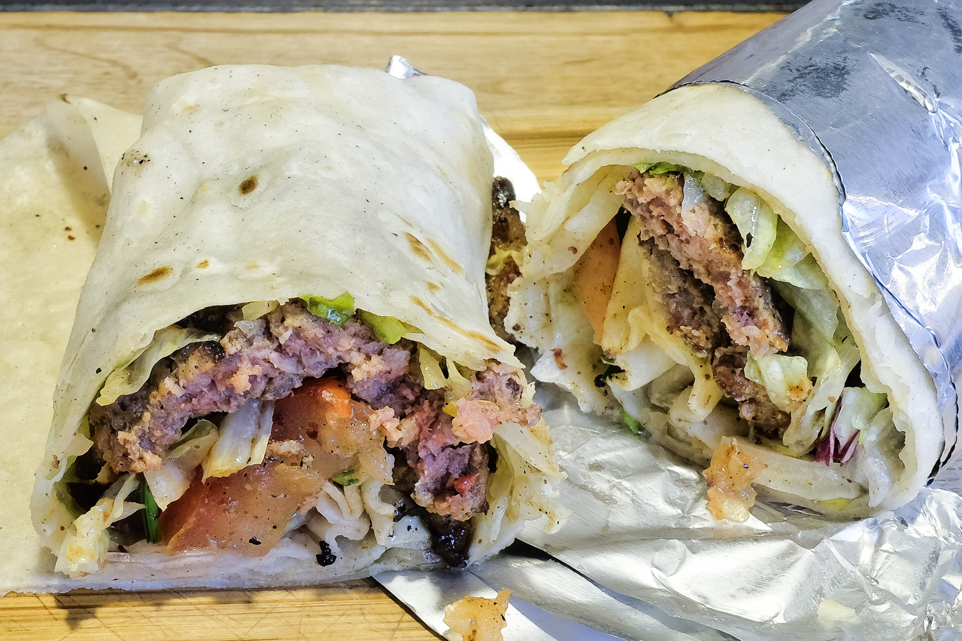 Hackfrikadellen eingerollt im Teigfladen mit Salat