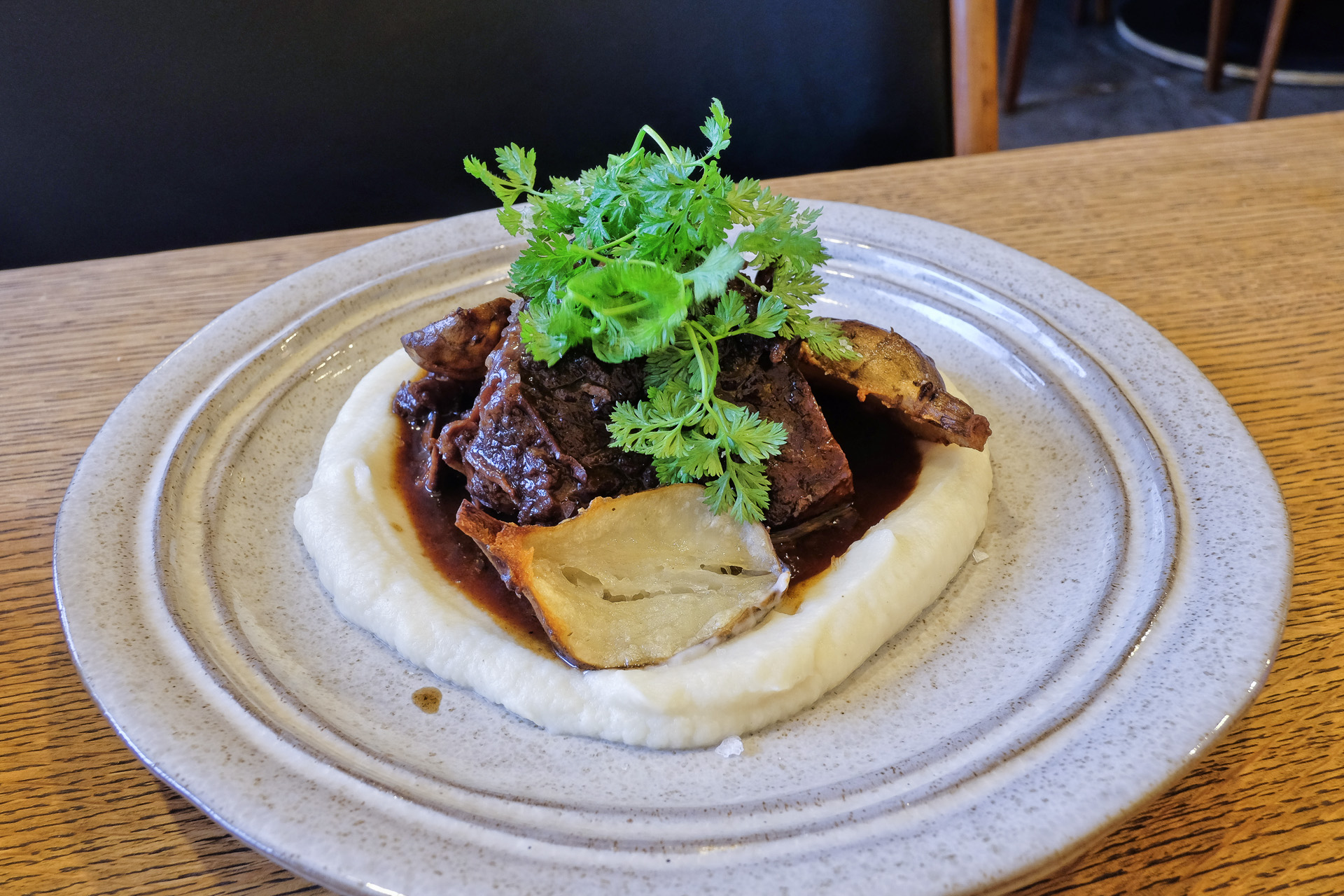 Geschmorte Rinderbacke mit Selleriepüree & Topinambur