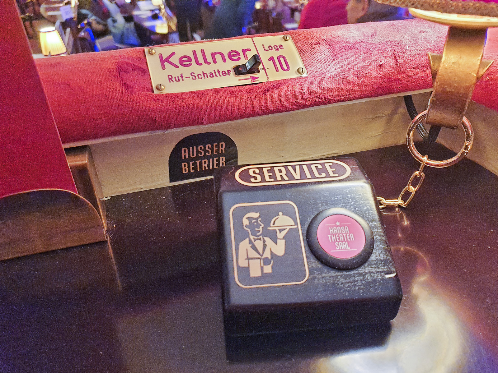 Wir hatten Platz 1 und 2 in Loge 4 (59,90 €). Per Schalter kann man den Kellner