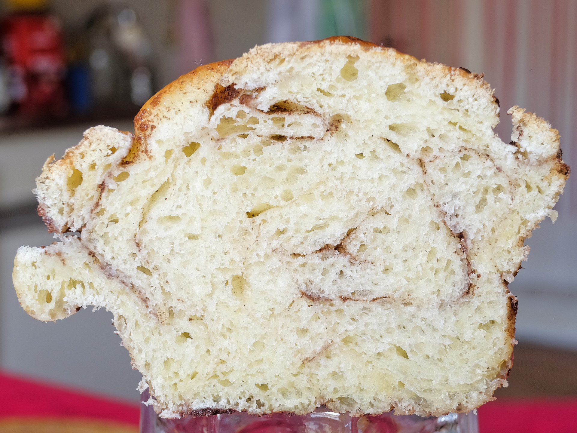 Der Hefeteig war schön feinporig ohne pappig zu sein, er hatte ein feines Aroma mit feiner Zimtnote. Sehr lecker.