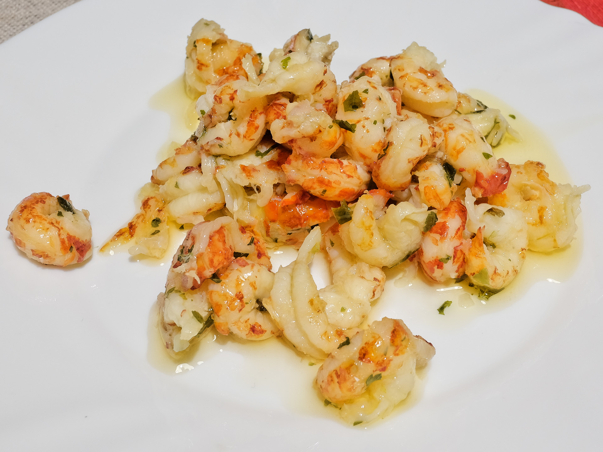 Flusskrebsschwänze in Knoblauchgewürzöl