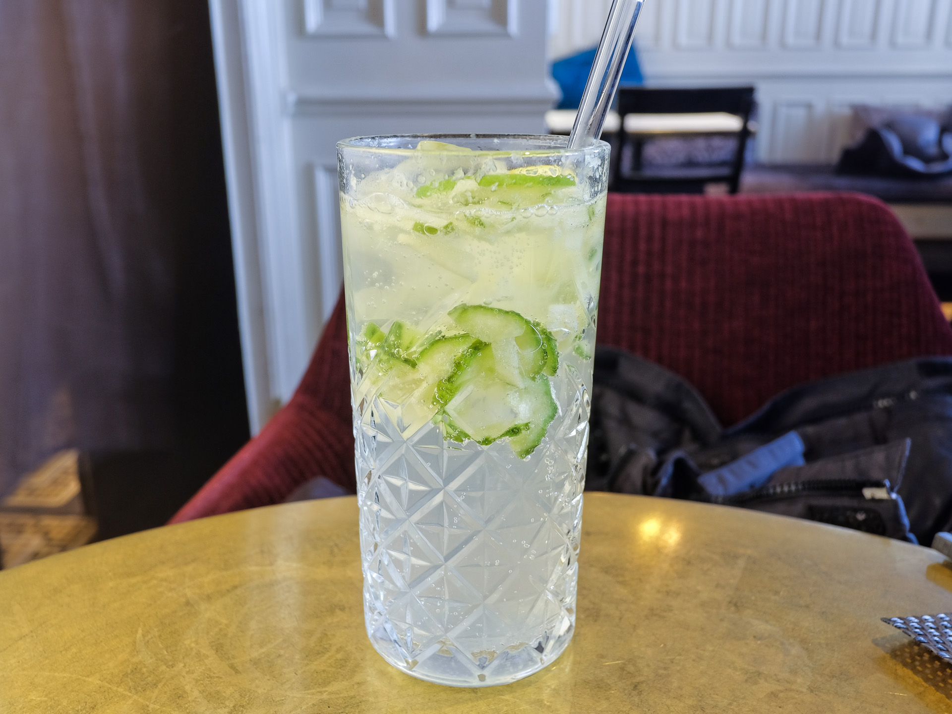 Die Limonade enthielt Gurke, Apfel, Ingwer und Sodawasser. Frisch und nicht zu süß, sehr lecker.