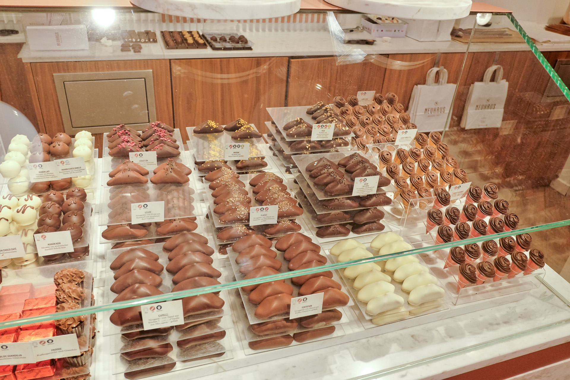 Der Service war freundlich und zuvorkommend, Neuhaus Chocolatier bietet eine ausgezeichnete Qualität.