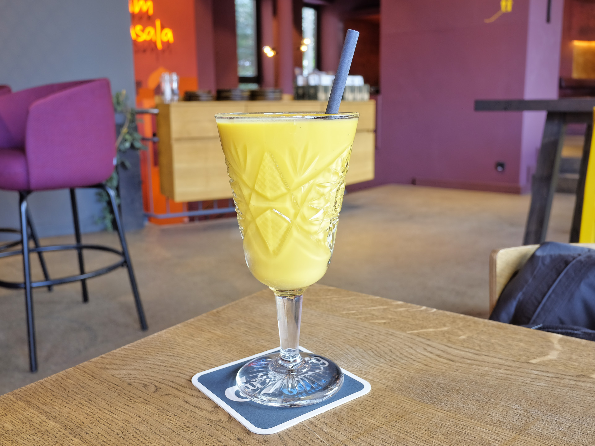 Der Mango Lassi war cemig und hatte ein feines Aroma, sehr lecker.