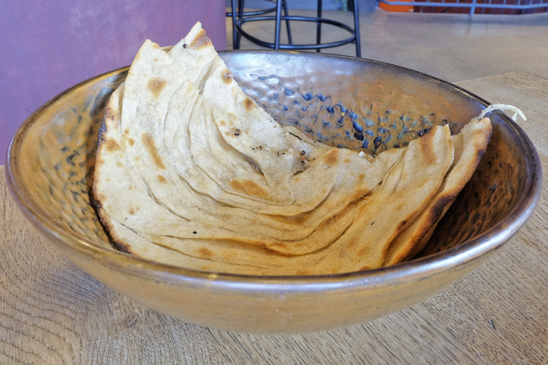 Als Beilage gab es Paratha, ein Fladenbrot das ähnlich wie Blätterteig aus mehreren Schichten bestand. Es war weich und hatte ein feines Aroma, es war aber auch etwas fettig. Sehr lecker.