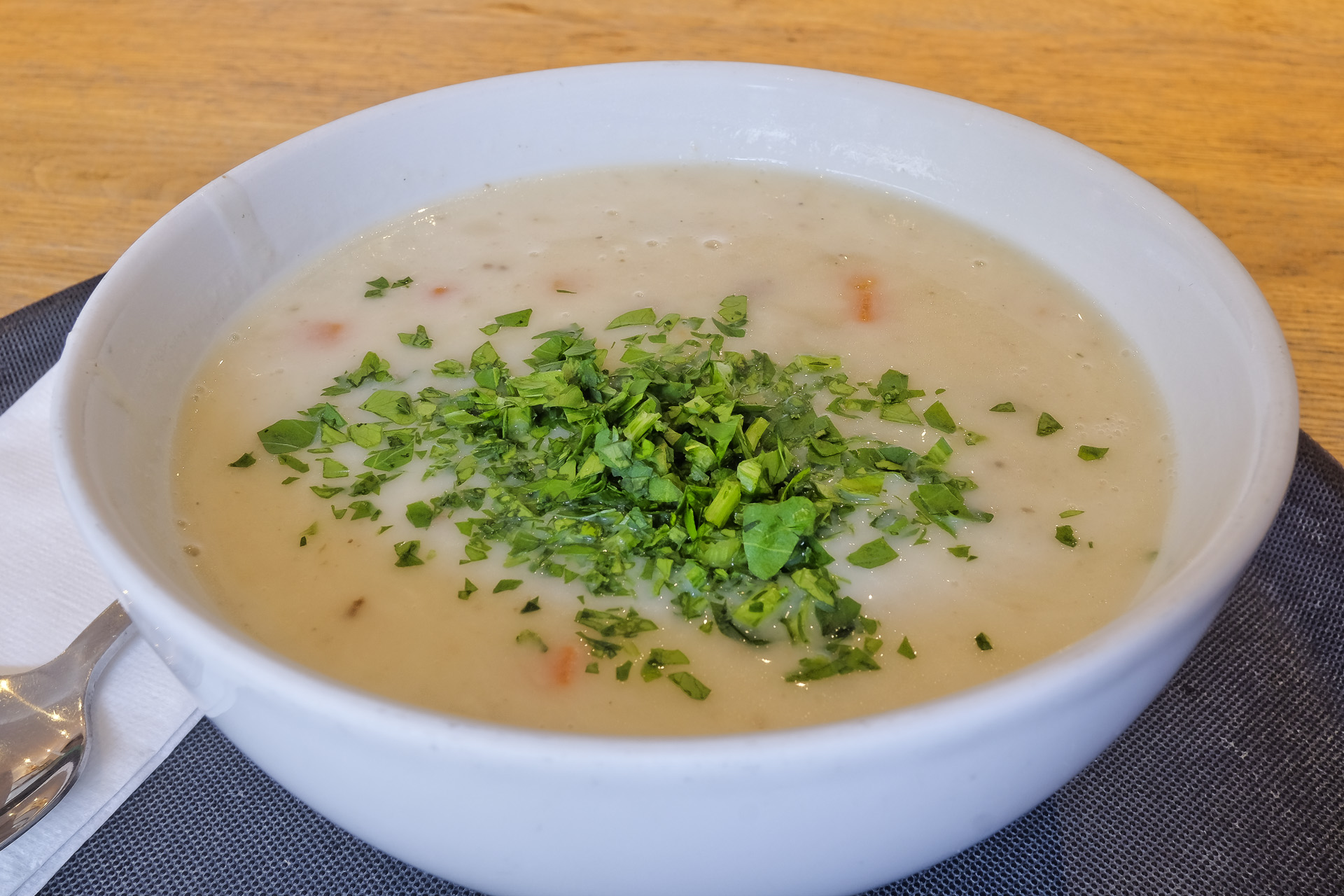 Der Tafelspitz Eintopf hatte eine cremige Textur und ein eher dezentes Meerrettich Aroma. Der Eintopf enthielt Tafelspitz, Kartoffeln, Zwiebeln, Sellerie, Karotten und Porree. Sehr lecker.