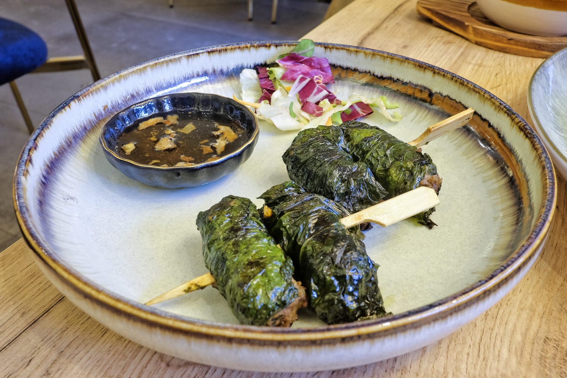 Würzig gegrillte Rinderröllchen in Wildbetelblättern