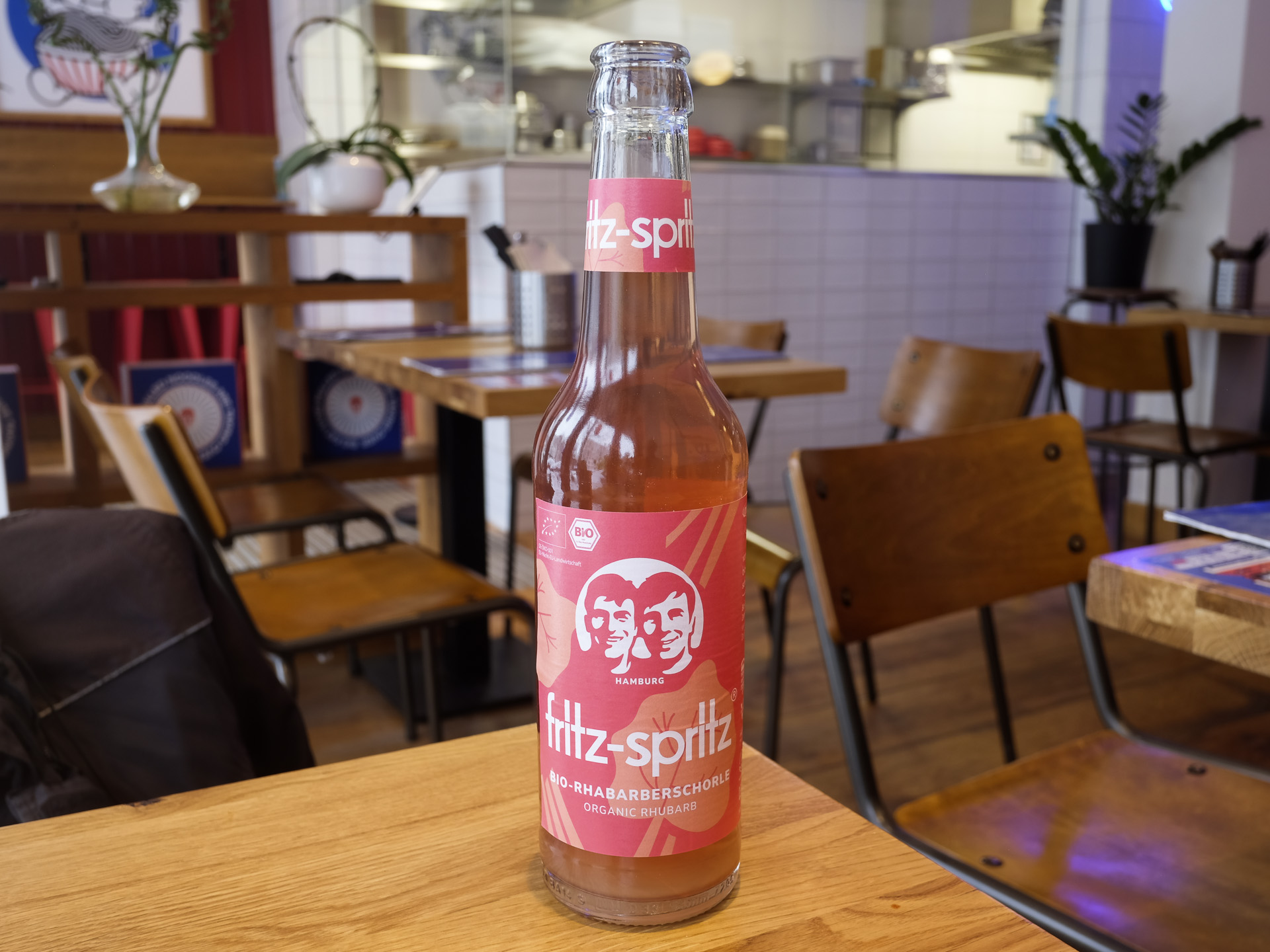 Zum Essen hatte ich eine Flasche Rhabarber Schorle von Fritz Kola.