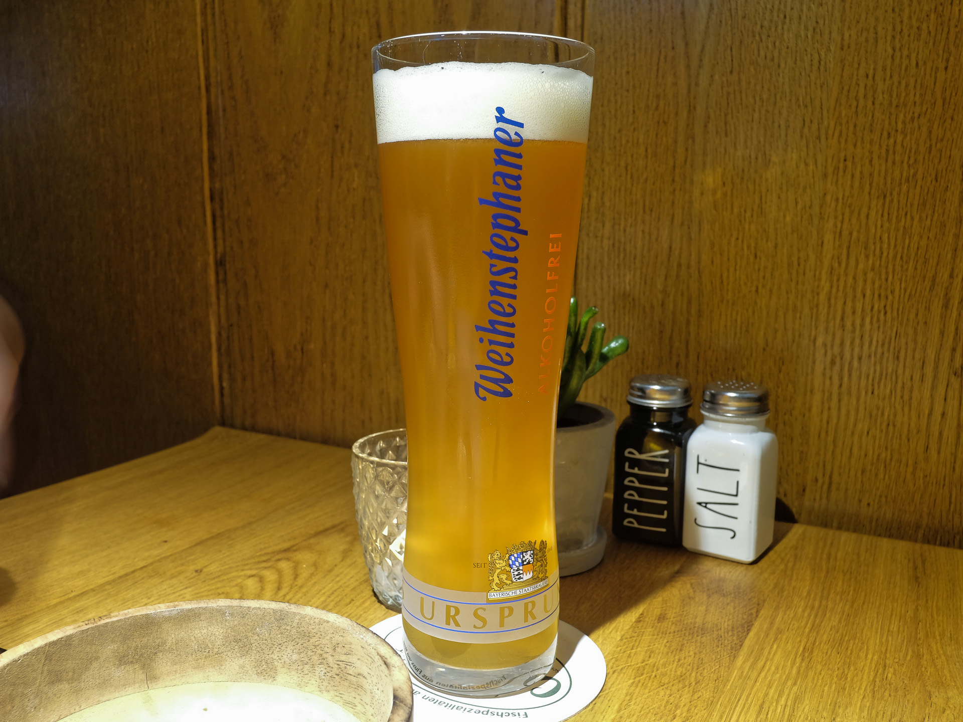 Zum Essen hatte ich ein Weihenstephan Hefeweizen Alkoholfrei (0,5 l für 5,60 €).