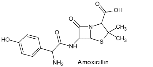 Amoxicillin ist ein ß-Lactam-Antibiotikum und wird in Kombination mit Clavulansäure eingesetzt. Gegen Amoxicillin haben einige Bakterien Resistenzen entwickelt weil sie den Wirkstoff mit ß-Lactamasen zerstören können. Die Clavulansäure inhibiert diese Enzyme und erweitert damit das Wirkumsspektrum des Amoxicillins.