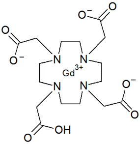 Diese Kontrastmittel enthalten das seltene Erden Element Gadolinium, es ist stark paramagnetisch und verbessert die Bildqualität. Da freie Gadolinium Ionen stark toxisch sind werden sie als Chelatkomplexe eingesetzt.