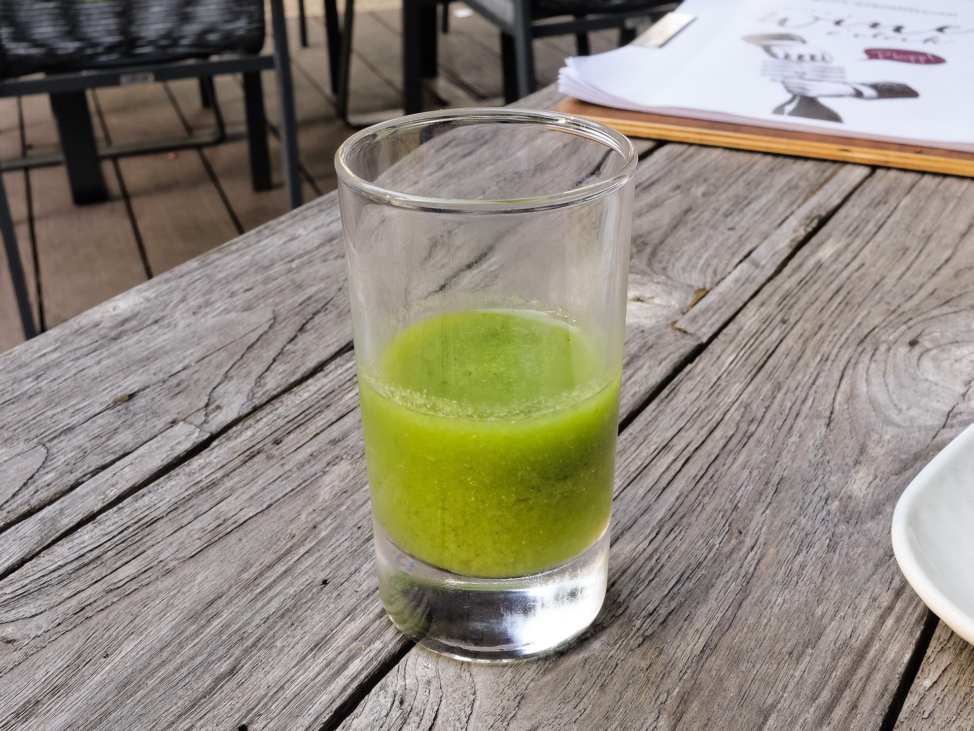 Als Amuse Gueules gab es eine Gurken Kaltschale mit frischem, fein säuerlichen Aromen und leichter Schärfe, sehr lecker.
