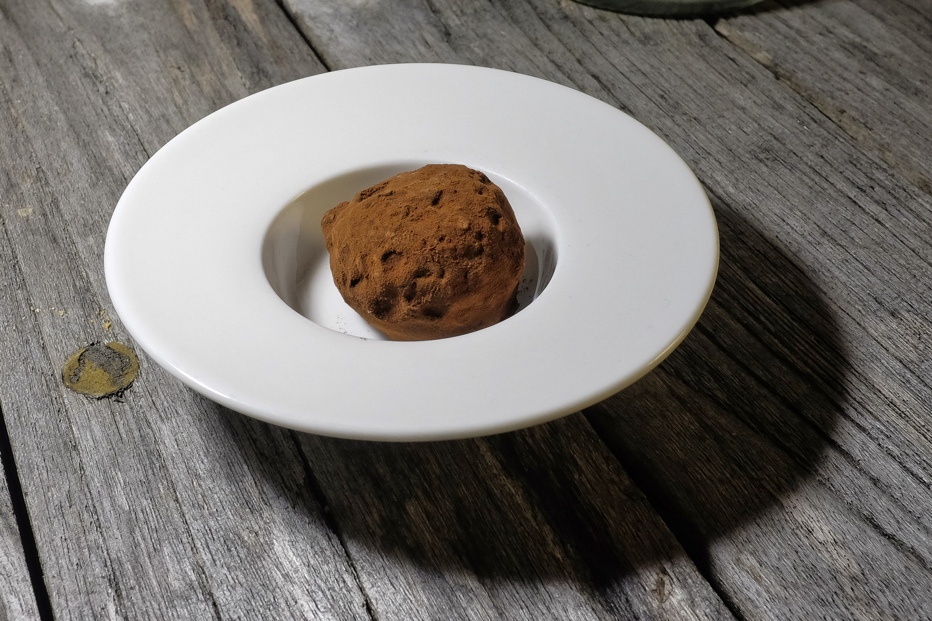 Als "Predessert" gab es eine Praline aus knackiger dunkler Schokolade mit Orangen Trüffel. sehr lecker.