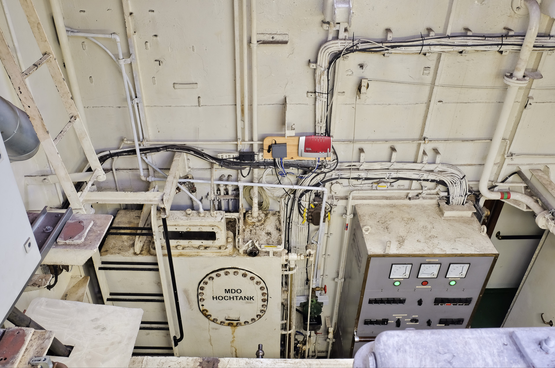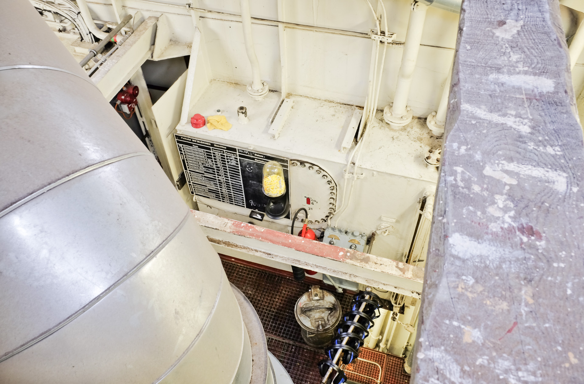 An Bord habe ich zuerst einen Blick durch die offenen Luken auf den Maschinenraum geworfen.