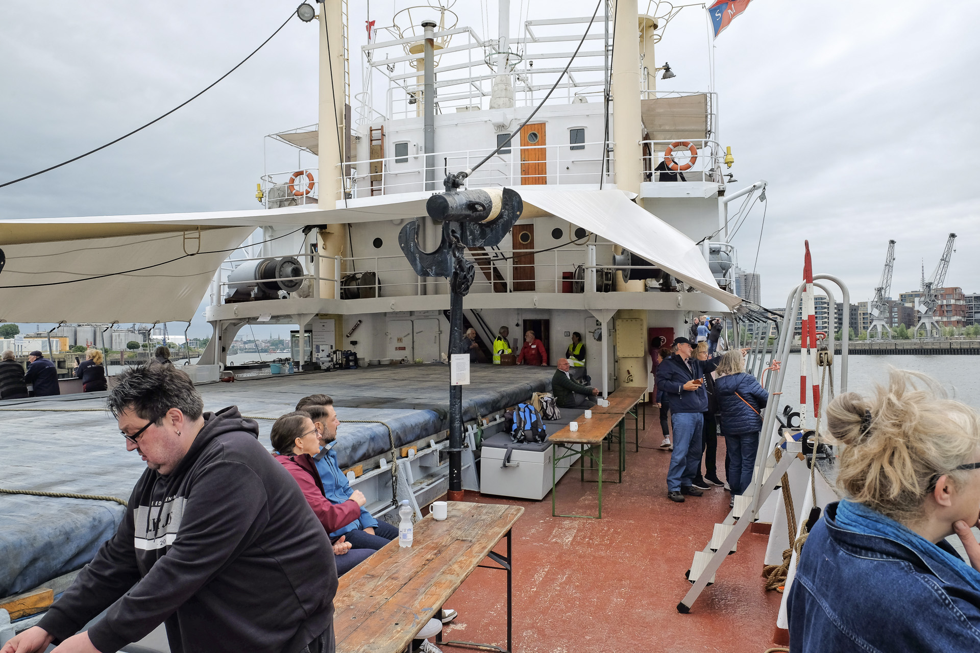 Unsere Fahrt mit der MS Bleichen sollte um 10:00 beginnen, Das Bording fand zwischen 08:30 und 09:30 statt. Wir waren rechtzeitig vor Ort, ich musste meinen Wagen allerdings noch einmal umparken da in Schuppen 52 die 150 Jahr Feier der Allgemeine Deutsche Schiffszimmerer-Genossenschaft stattfand.