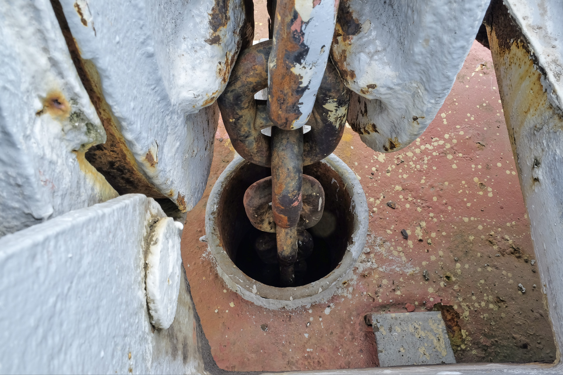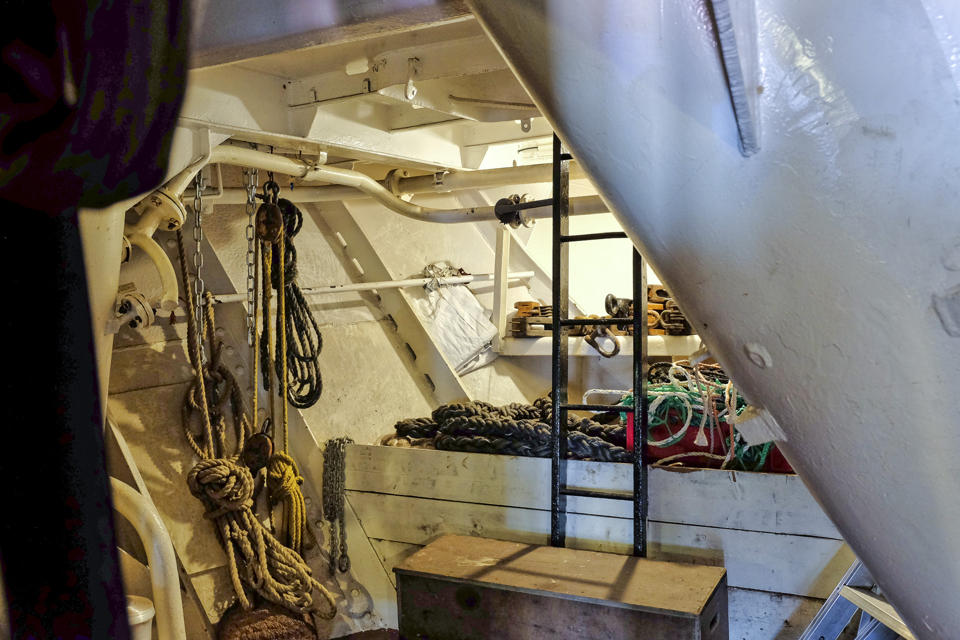 Das Kabelgatt im Vorschiff beherbergt auch die Ankerkästen.