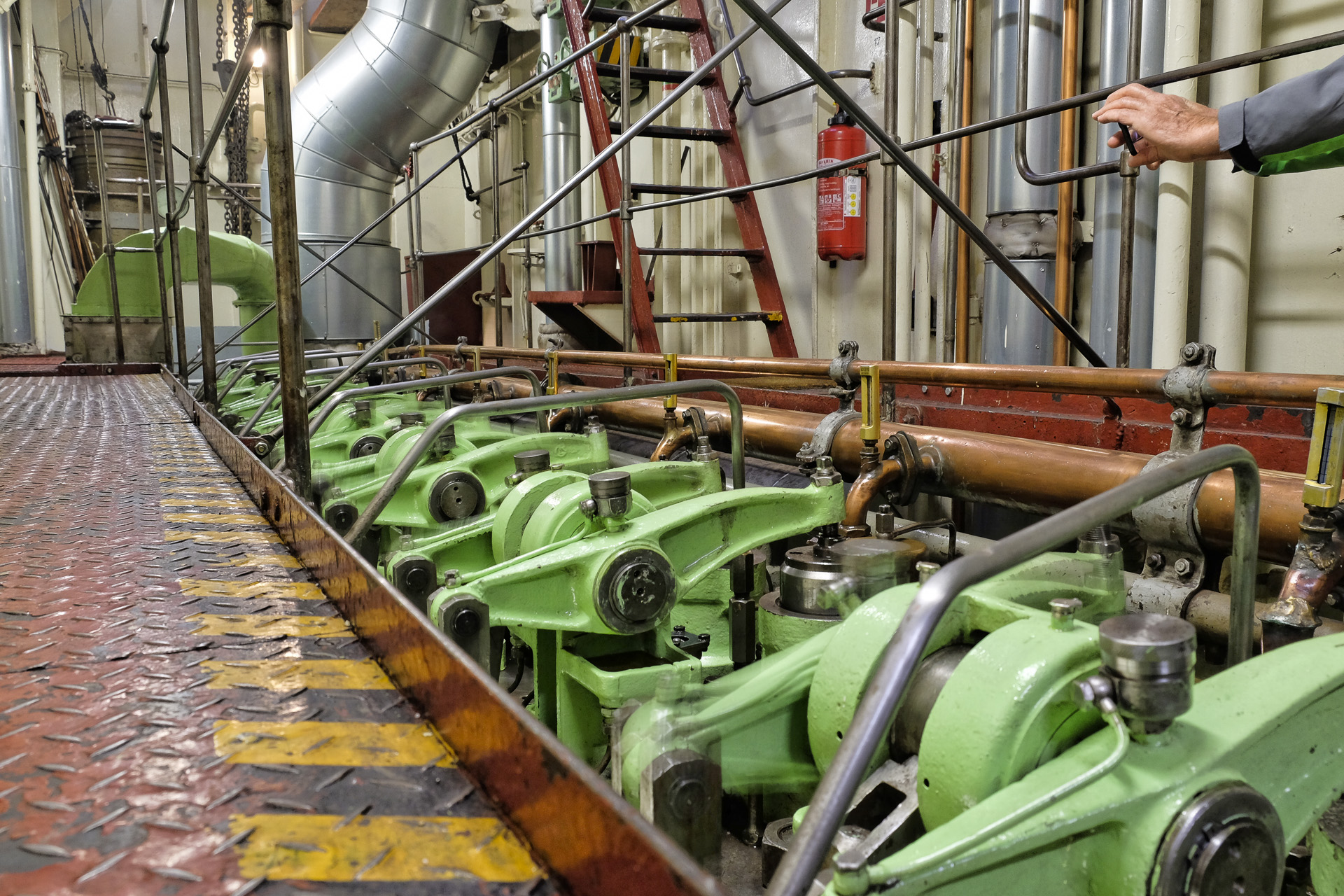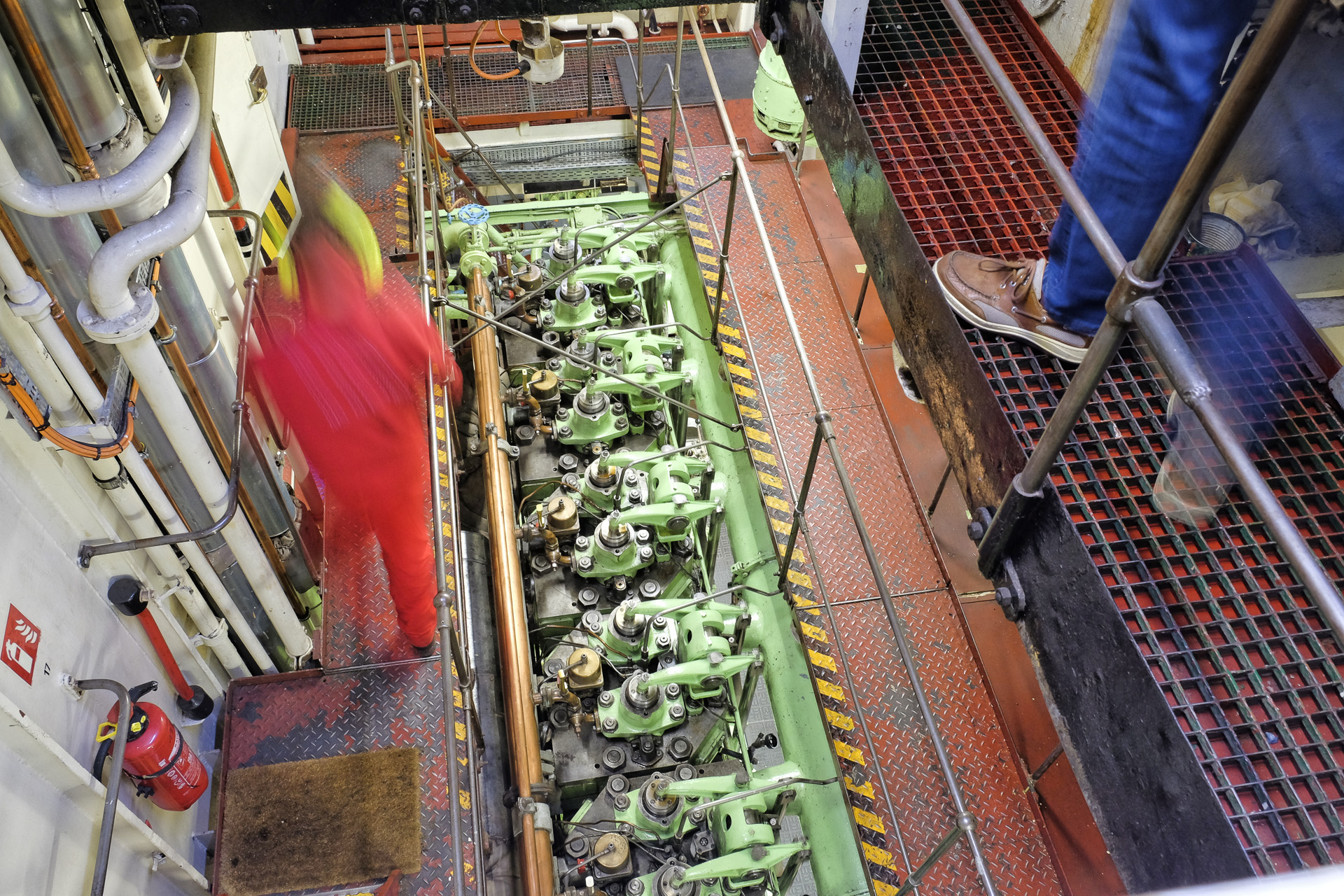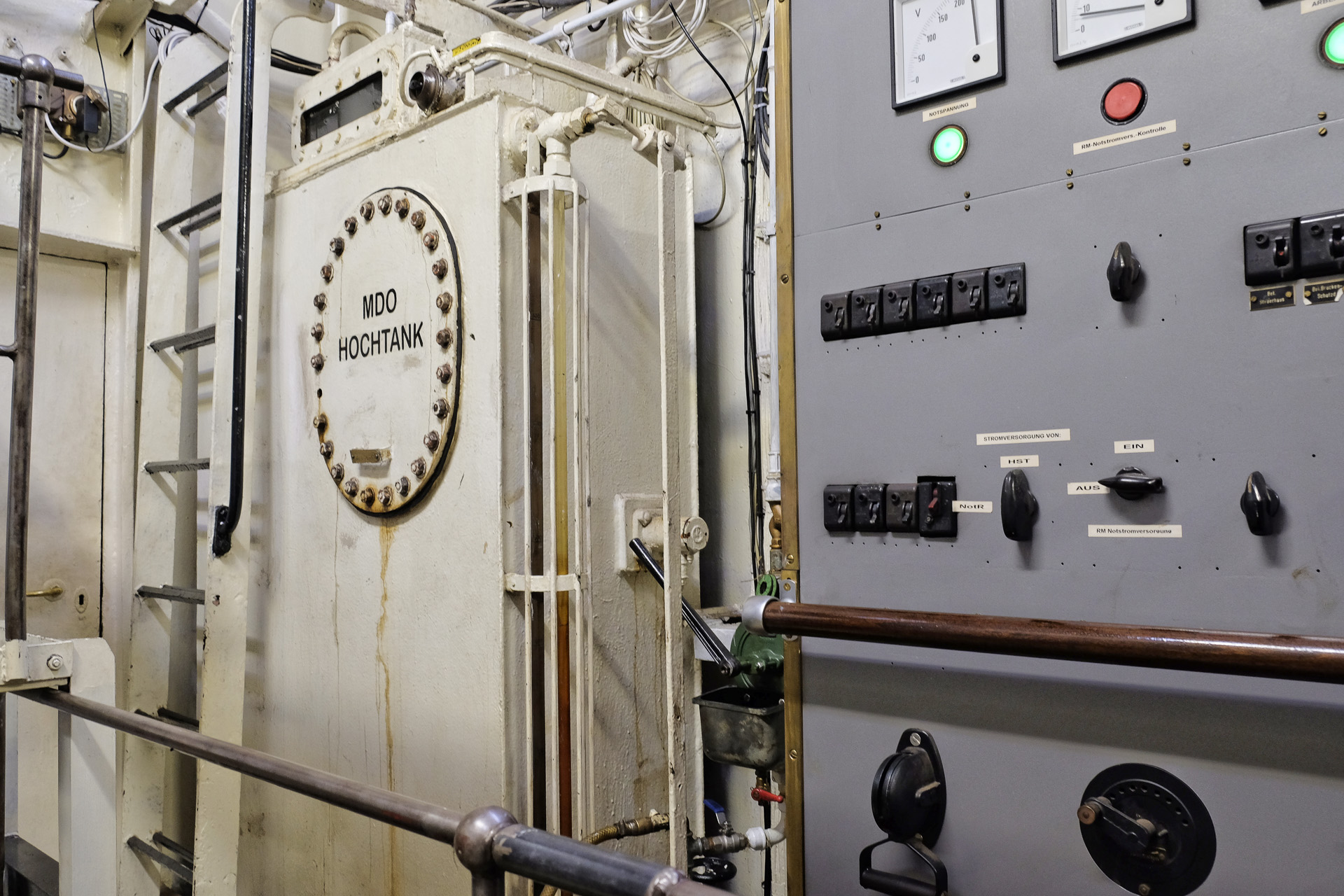 Im Rahmen einer Führung konnte man auch den Maschinenraum besichtigen. Aufgrund der Lautstärke (Gehörschutz) war dabei keine Unterhaltung möglich.