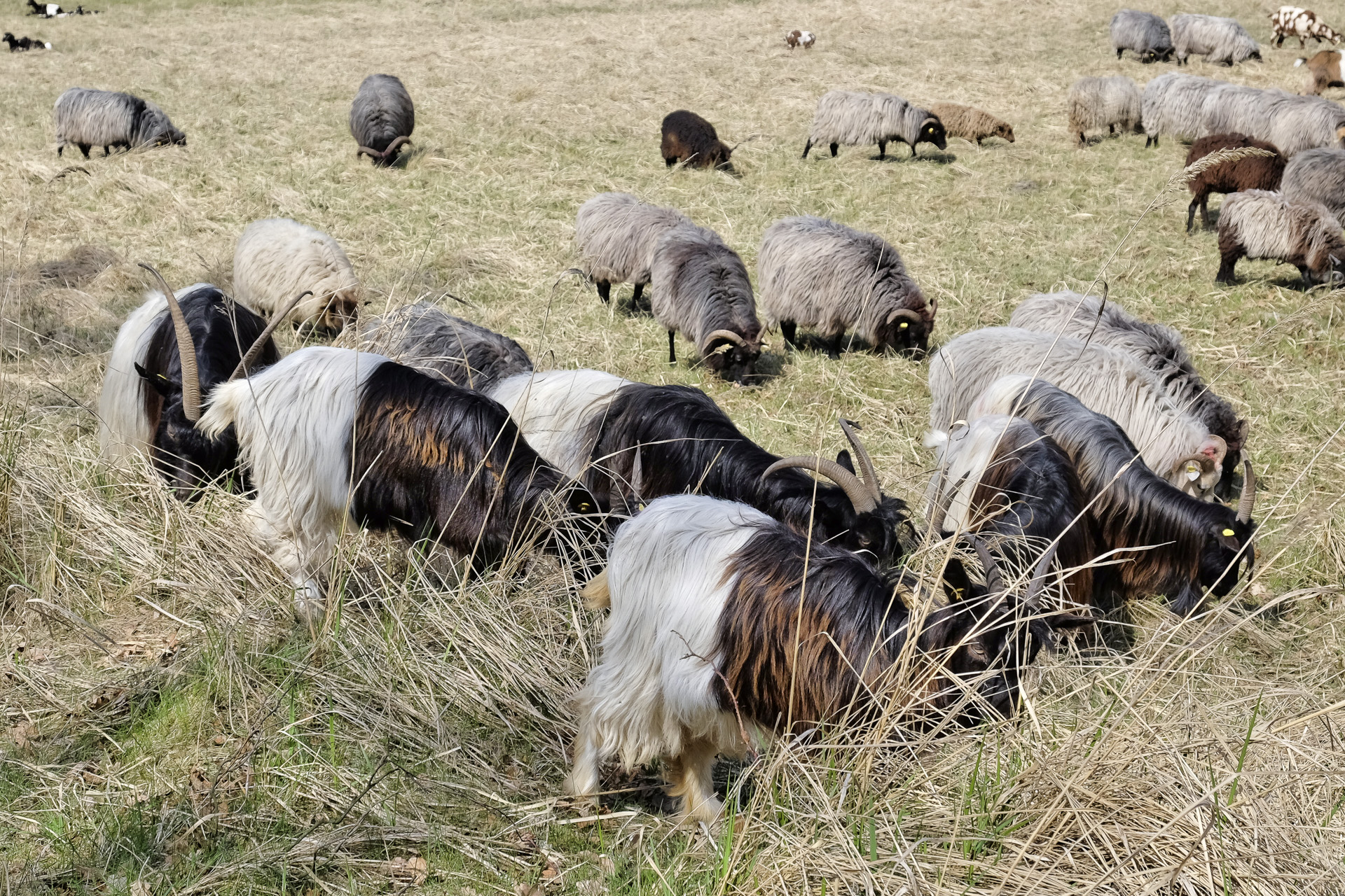 Die Schafe und Ziegen der Ballybannon Farm sorgen im Naturschutzgebiet Boberger Niederung für die Pflege der Heide und Flächen.