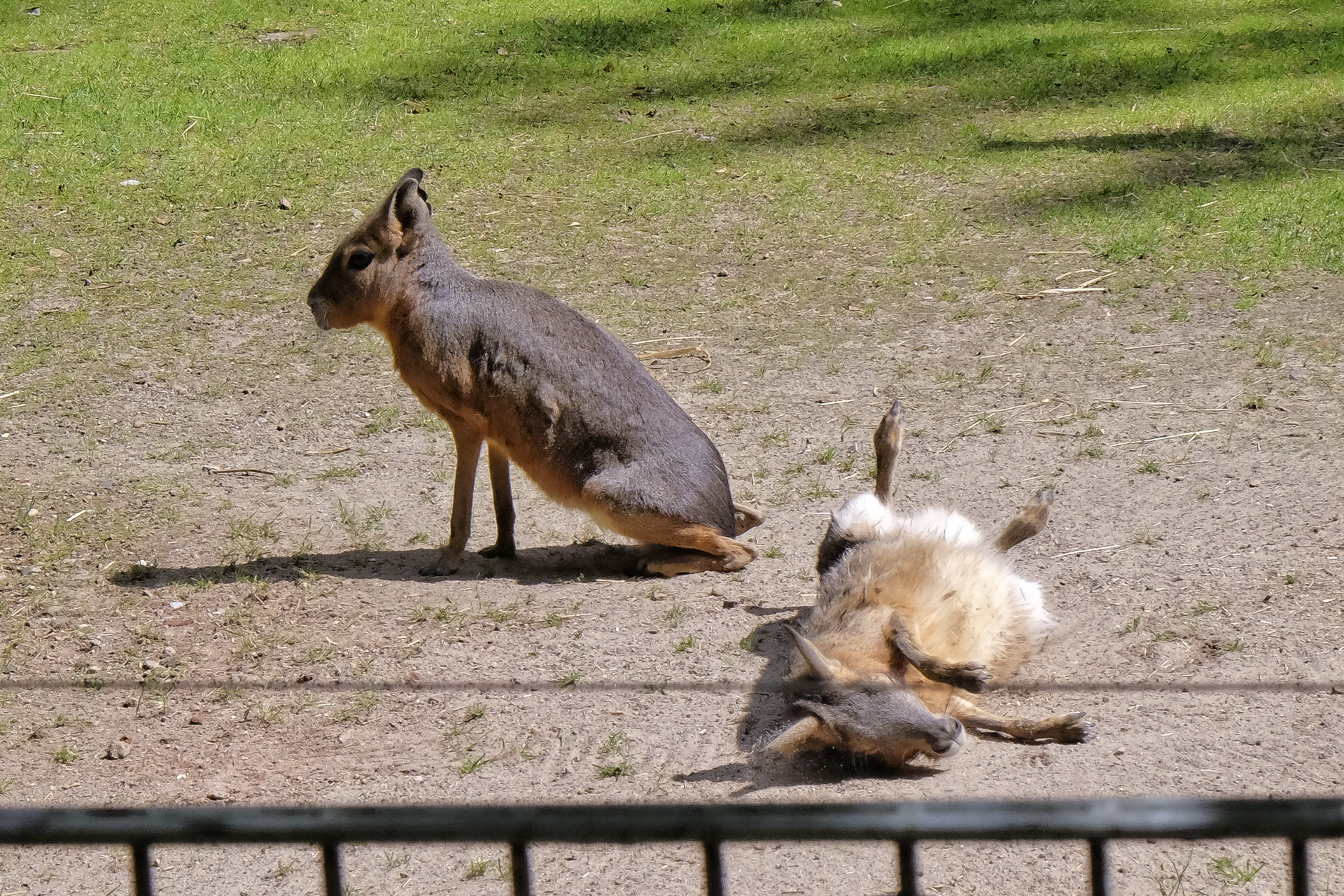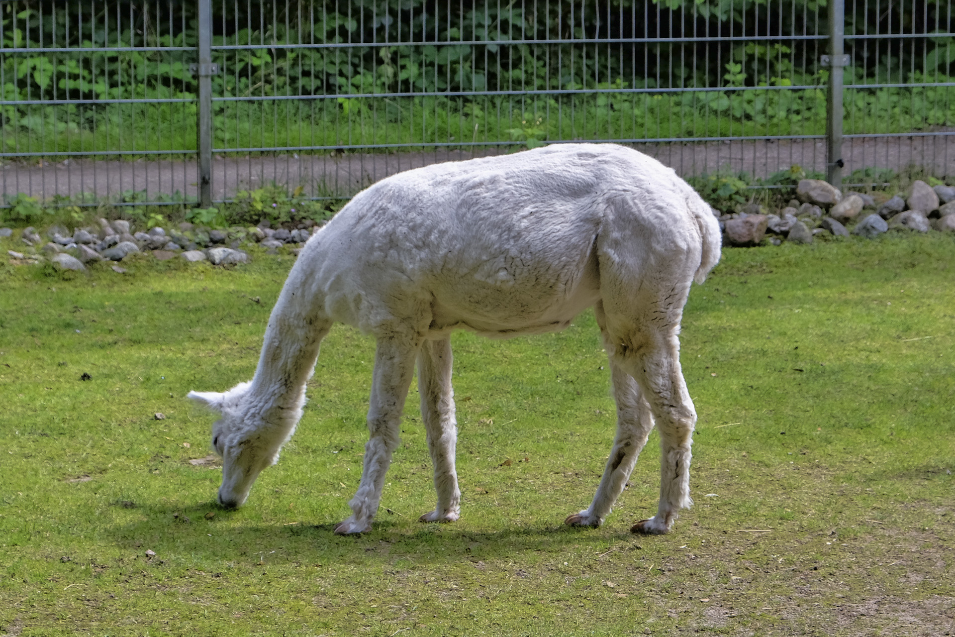 vorsichtig streicheln konnte. Das Fell ist aber hart und stumpf, da steichelt man lieber ein Alpaka.