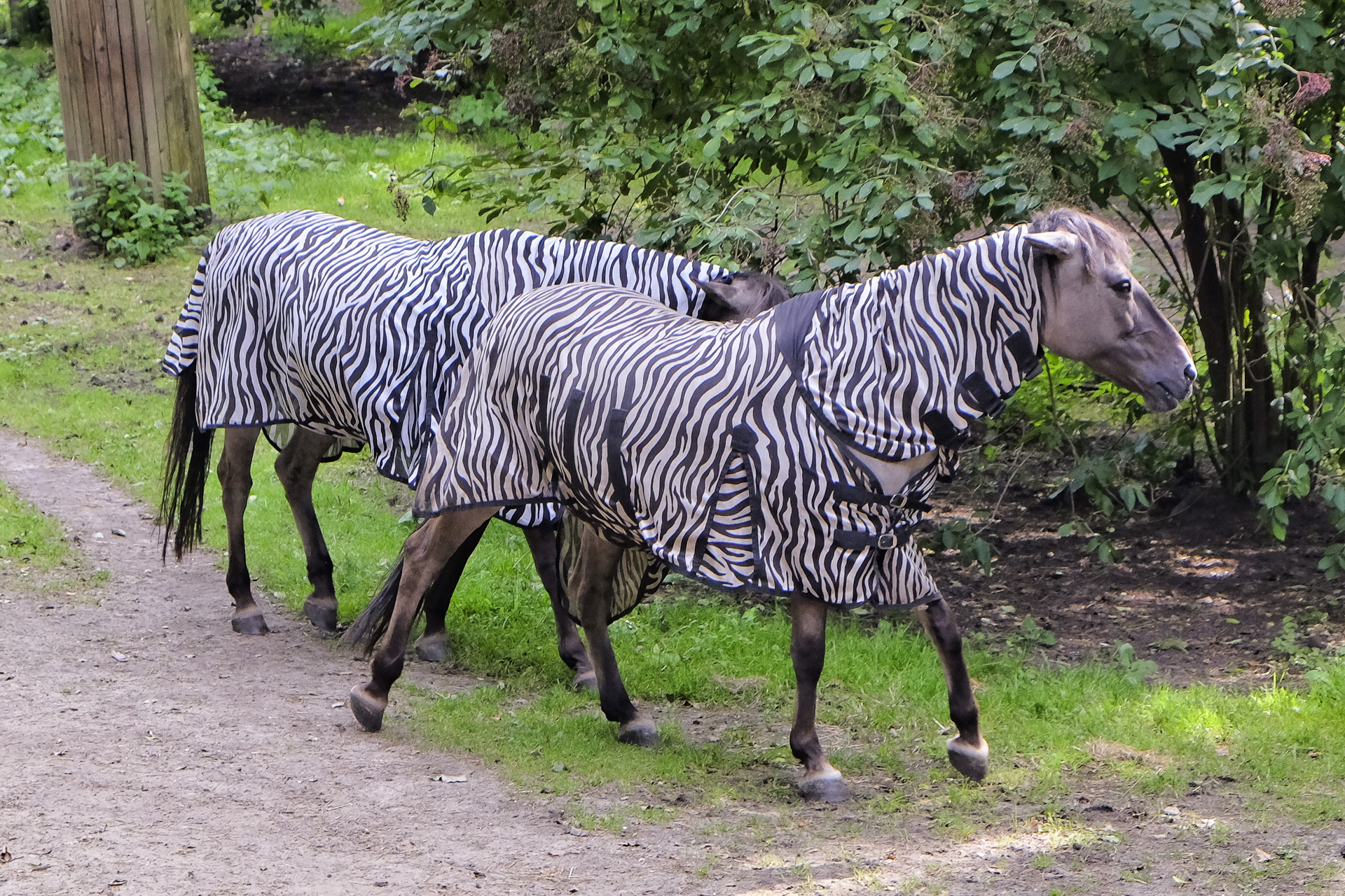 Die Tarpane waren wegen der Insekten als Zebra verkleidet.