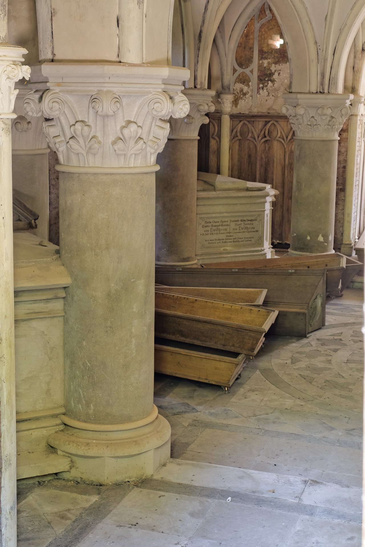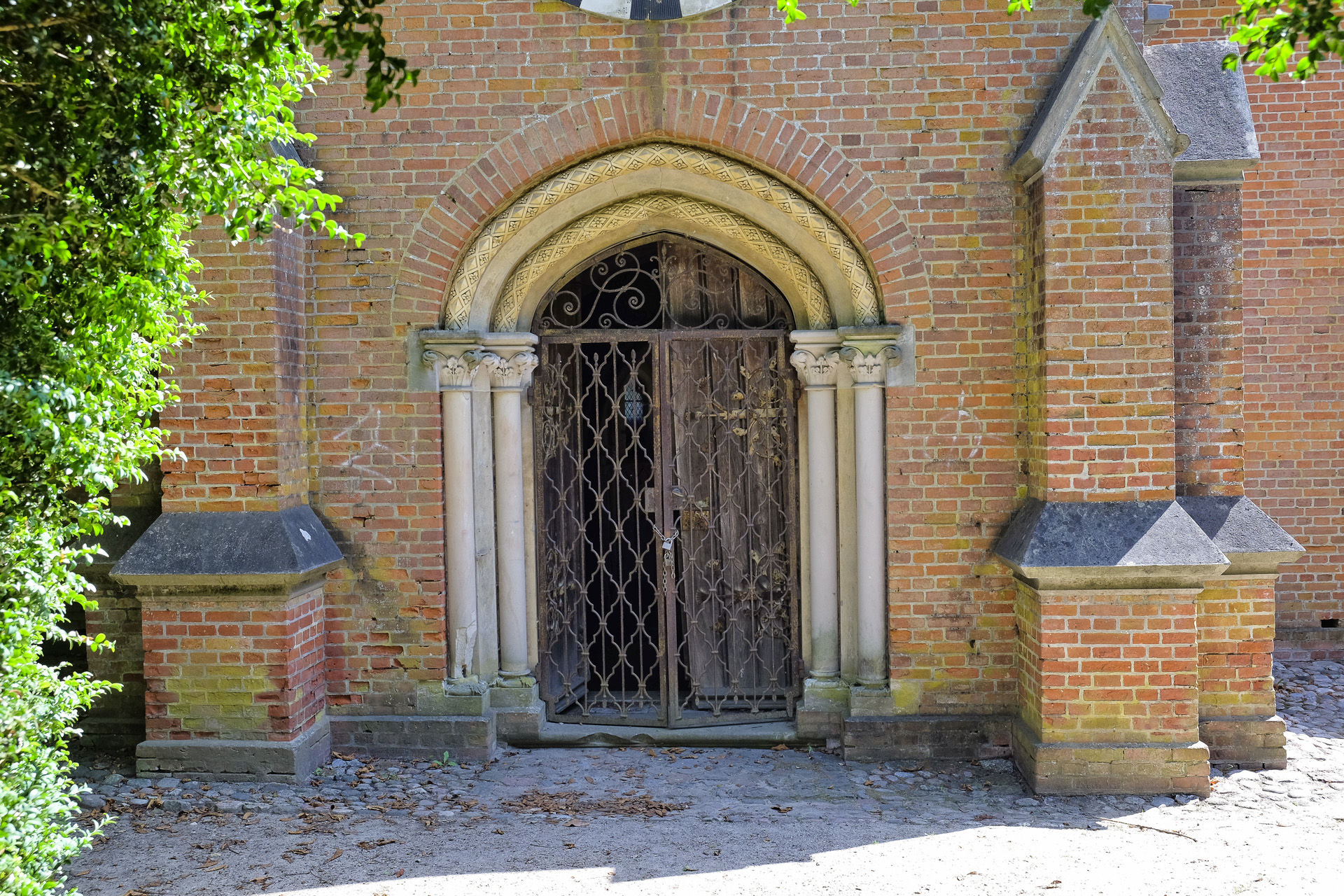 Die Tür ist verschlossen aber man kann einen Blick durch das Gitter ins Innere werfen.