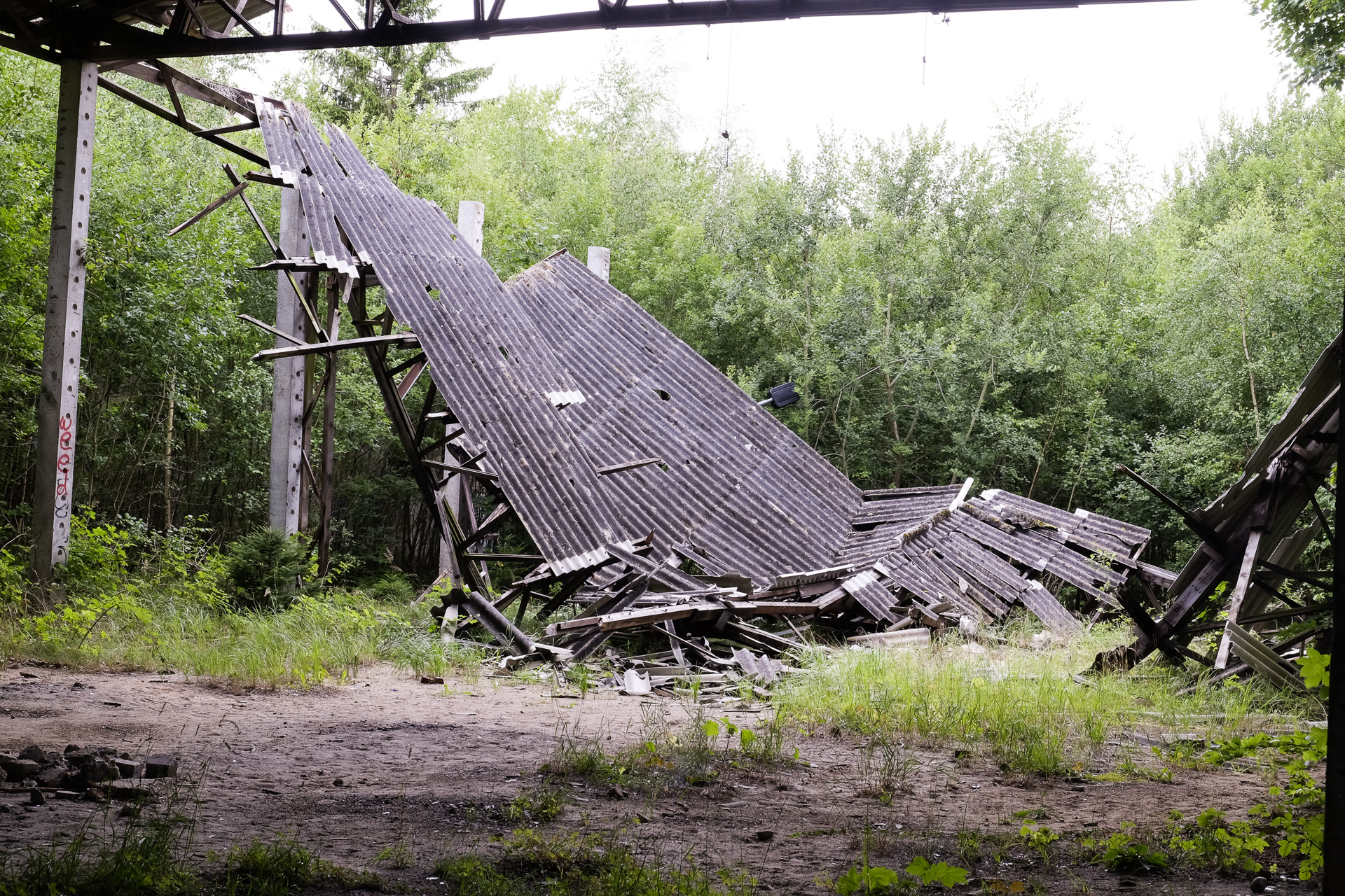 Eine größere Halle (Kesselhaus ?) links vom Weg.