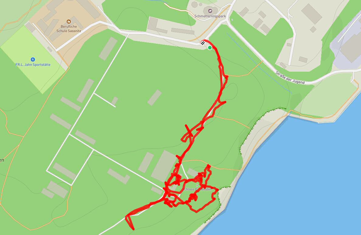 Die Tour habe ich mit GPS aufgezeichnet (Tour.gpx), im Wald und in den Gebäuden war die Genauigkeit aber nicht so gut.