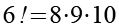 Die 1 * 2 * 5 ersetzen wir durch 10 und erhalten für 6!.
