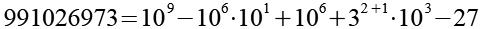 Wir betrachten zuerst die 991027000 und spalten sie in eine Summe auf.