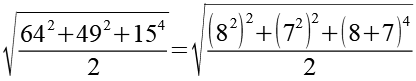 Die 64 ersetzen wir durch 82 und die 49 durch 72, die 15 ersetzen wir durch 8+7.